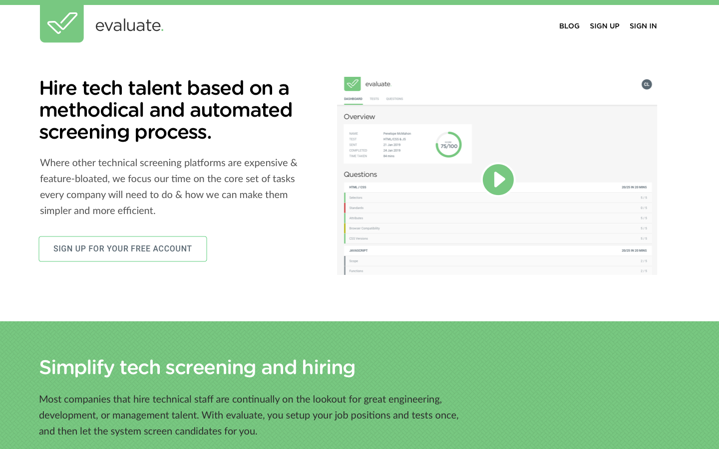 Quick signup. You'll be sending tests to candidates in minutes.