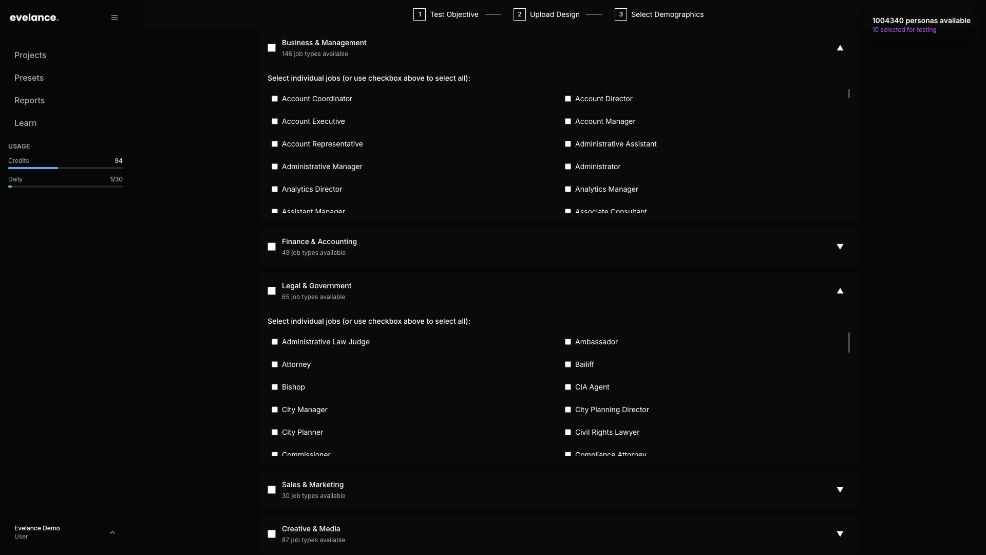 Evelance is a predictive user research platform used to make product decisions with evidence instead of opinion. It shows how a defined target audience is likely to react so teams can choose a direction with confidence.