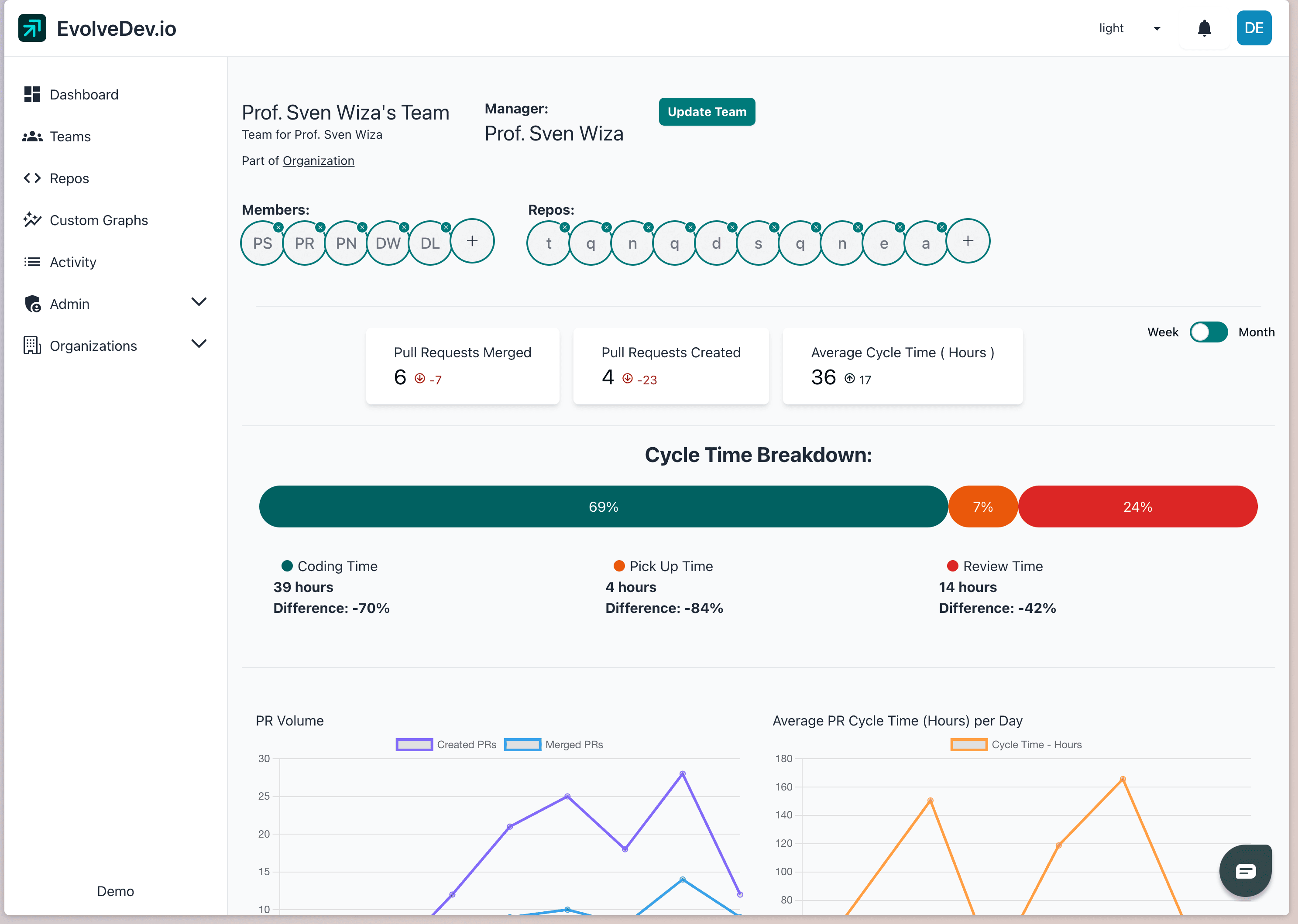 Flow offers metrics for software engineering management and is designed to help engineering managers measure software developer productivity based on data from GitHub, GitLab, BitBucket or any Git based code repository.