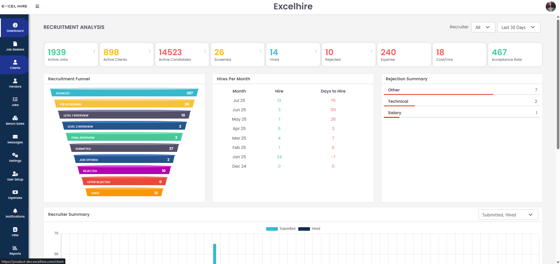 Excelhire saves us several hours each week by automating routine tasks like resume parsing, updating communications, and tracking compliance. The analytics dashboard offers immediate insights into our hiring metrics, helping us make more informed, data-driven choices. Collaboration between our internal teams and vendors has also become noticeably more efficient. Review collected by and hosted on G2.com.