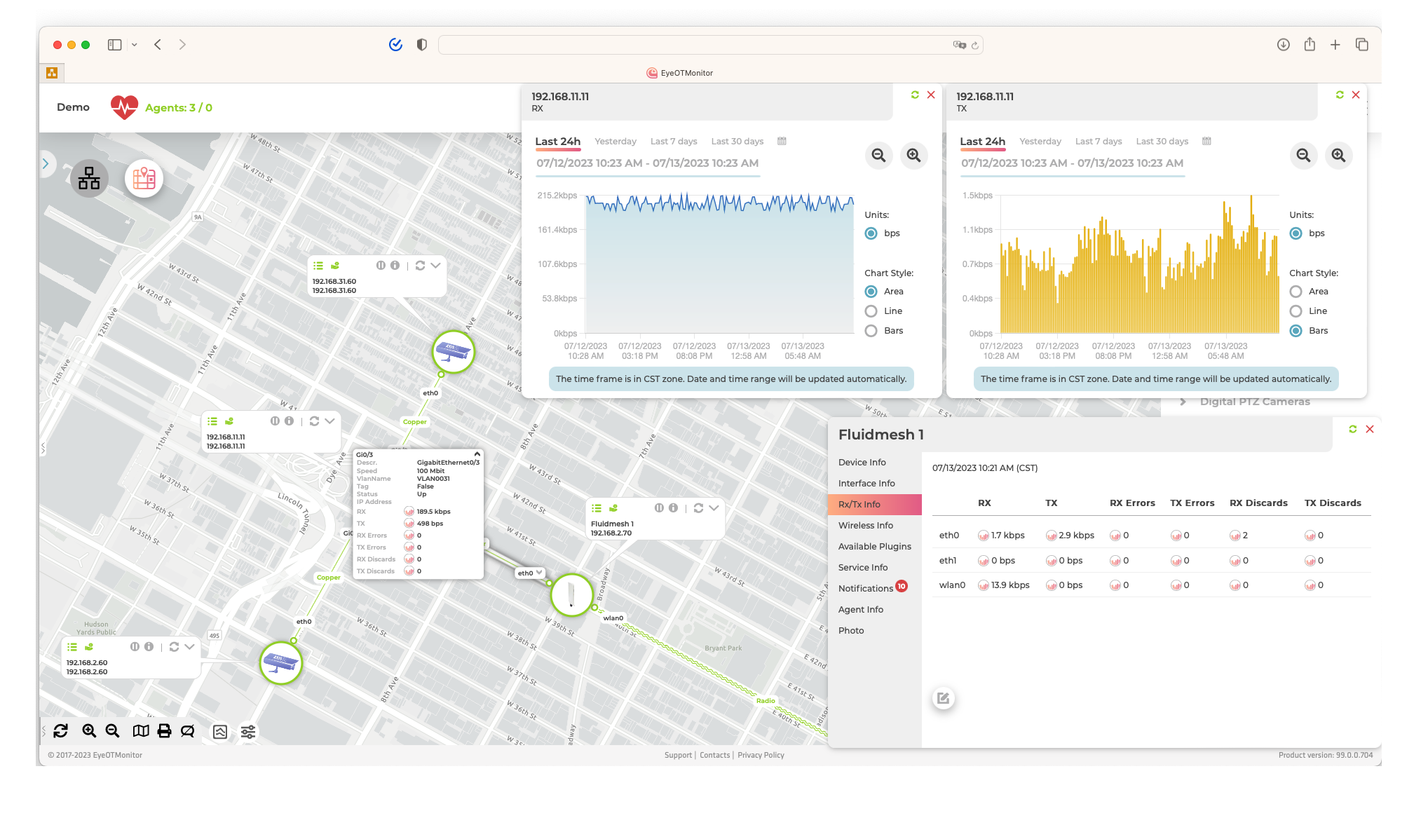 EyeOTmonitor connects camera health with VMS, network, and device intelligence, giving teams the full context needed to troubleshoot issues quickly. When a camera problem occurs, operators can immediately see whether the issue is image-related, network-related, or tied to the device itself. Visual topology and geospatial maps make it easy to locate affected cameras and understand their relationship to the broader system.