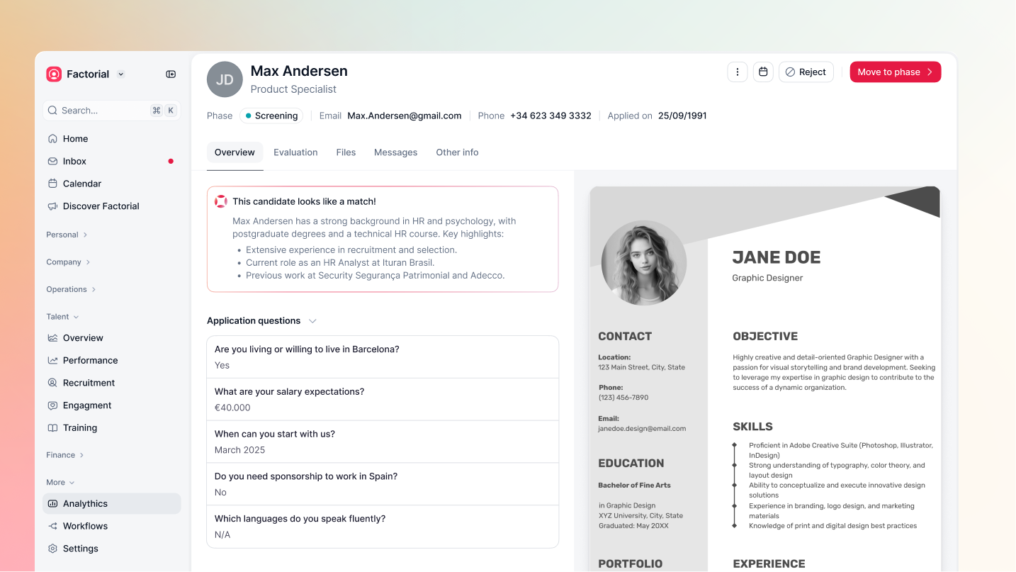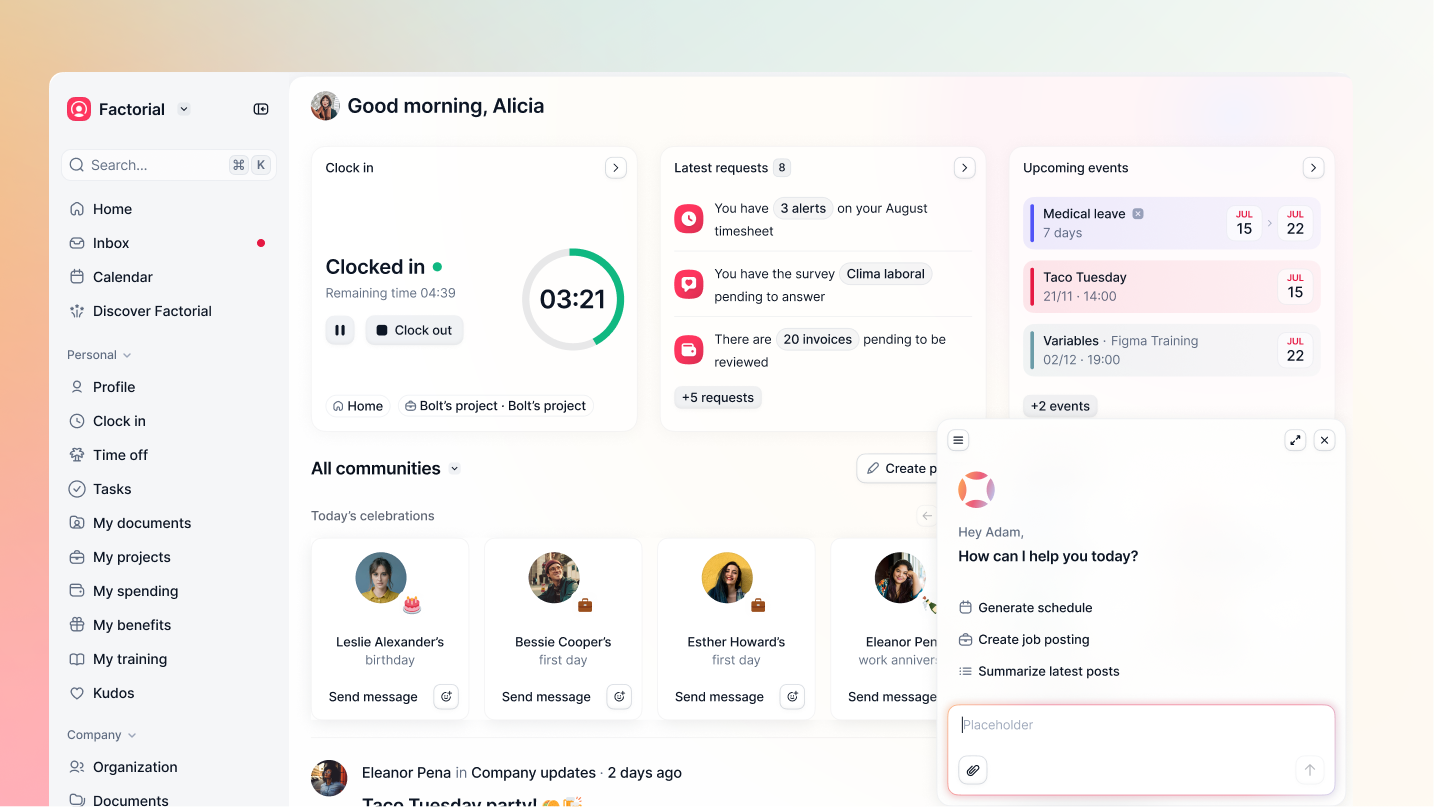 What I appreciate most about Factorial is its strong alignment with Spanish labor regulations, particularly in terms of time tracking and compliance with local laws. This feature significantly streamlines daily HR management and ensures that all legal obligations are reliably fulfilled. Another notable advantage is Factorial's integration capabilities with other business systems. The platform connects seamlessly with Microsoft Business Central, and the presence of an API makes it much easier to automate processes and synchronize data between different tools. In general, Factorial provides a modern, user-friendly interface that both employees and administrators find straightforward to navigate. Review collected by and hosted on G2.com.