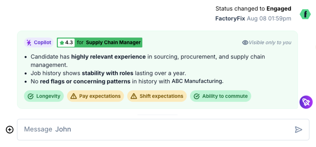 I’ve had a great experience using FactoryFix, especially because of how streamlined and effective the platform is. One of my favorite features is the ability to text candidates directly through the system. It makes communication much faster and more efficient, since most people see and respond to texts more quickly than emails. This has helped me get timely responses and keep the hiring process moving.