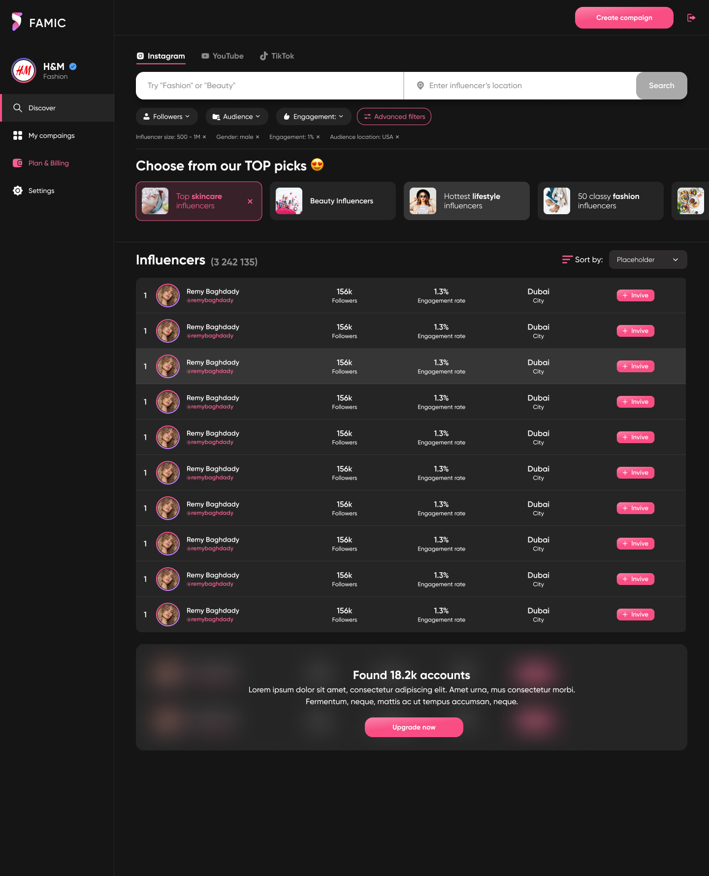 inBeat helps you find influencers for your marketing campaigns in just a few clicks.