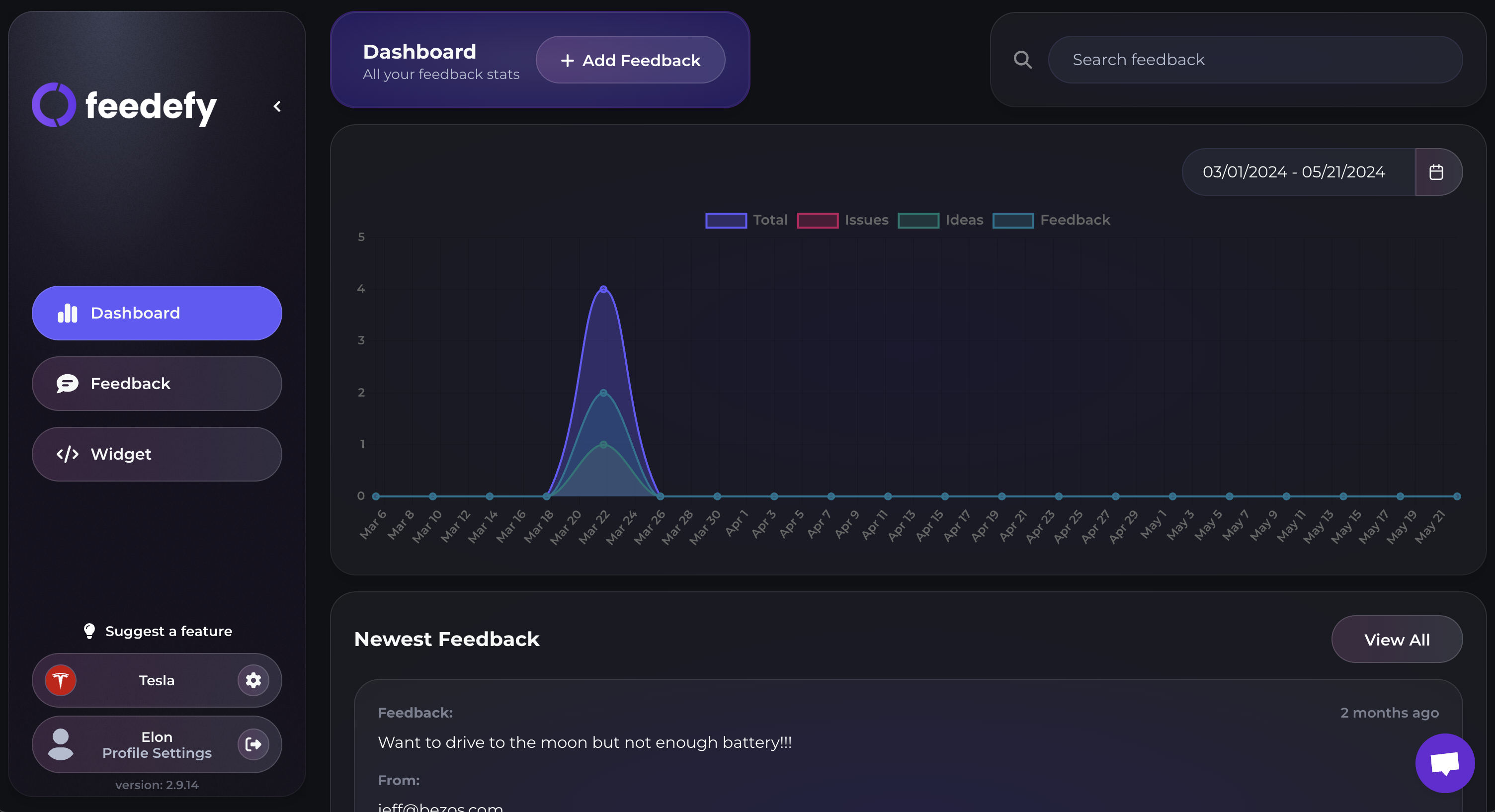 Since using Feedefy, my users have been sending me feedback much more often than before and I find myself in the dashboard every day.