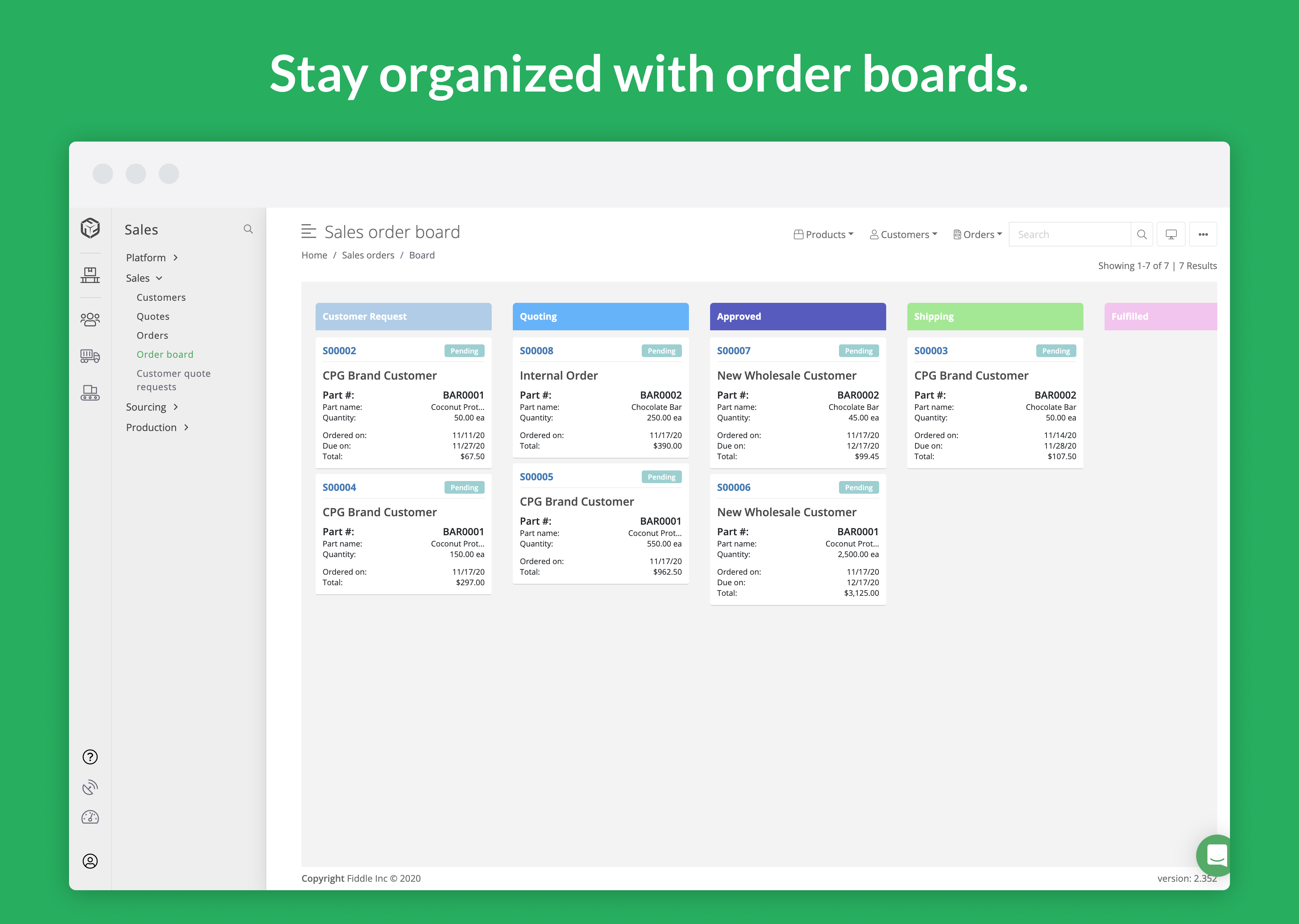 I can't imagine still trying to track all this stuff in a spreadsheet. We was struggling to keep track of wholesale orders and all the inventory needs associated with those orders. This was complicated because we also had our ecommerce orders coming in the whole time. The problem before Fiddle was we never new what to tell our wholesale customers about the inventory we had in stock. We would guess and then apologize later. It made us look really bad. Fiddle makes it so we can confidently know where we stand and if we'll be able to fulfill an order. If we are short, when we do our POs we know exactly what we need to order. It's fantastic. Review collected by and hosted on G2.com.