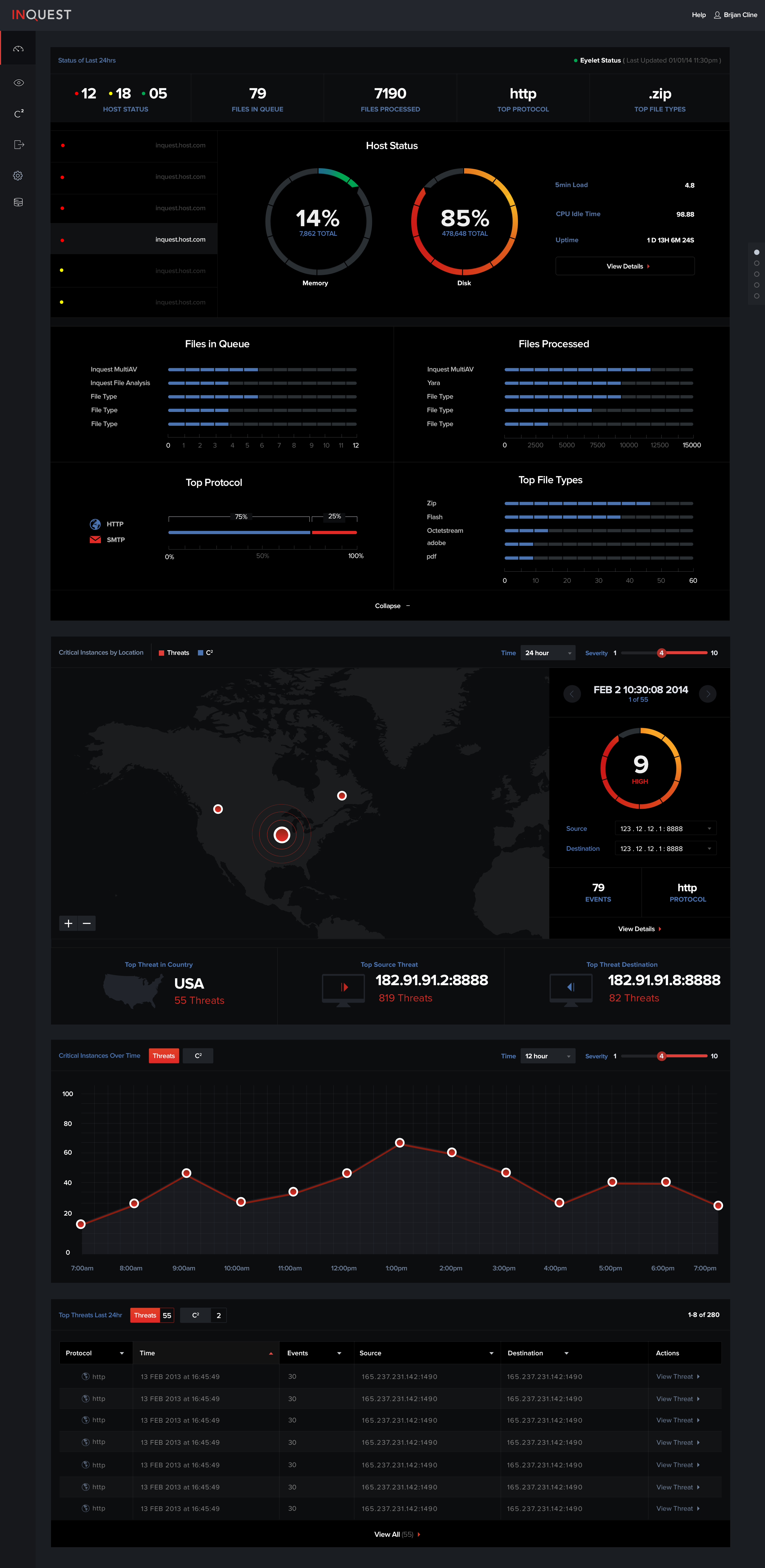 » Identifies Command and Control (C2) activity associated with advanced persistent threats (APTs) by performing behavioral analytics and leveraging unique Indicators of Compromise (IoC) acquired and curated by InQuest Labs