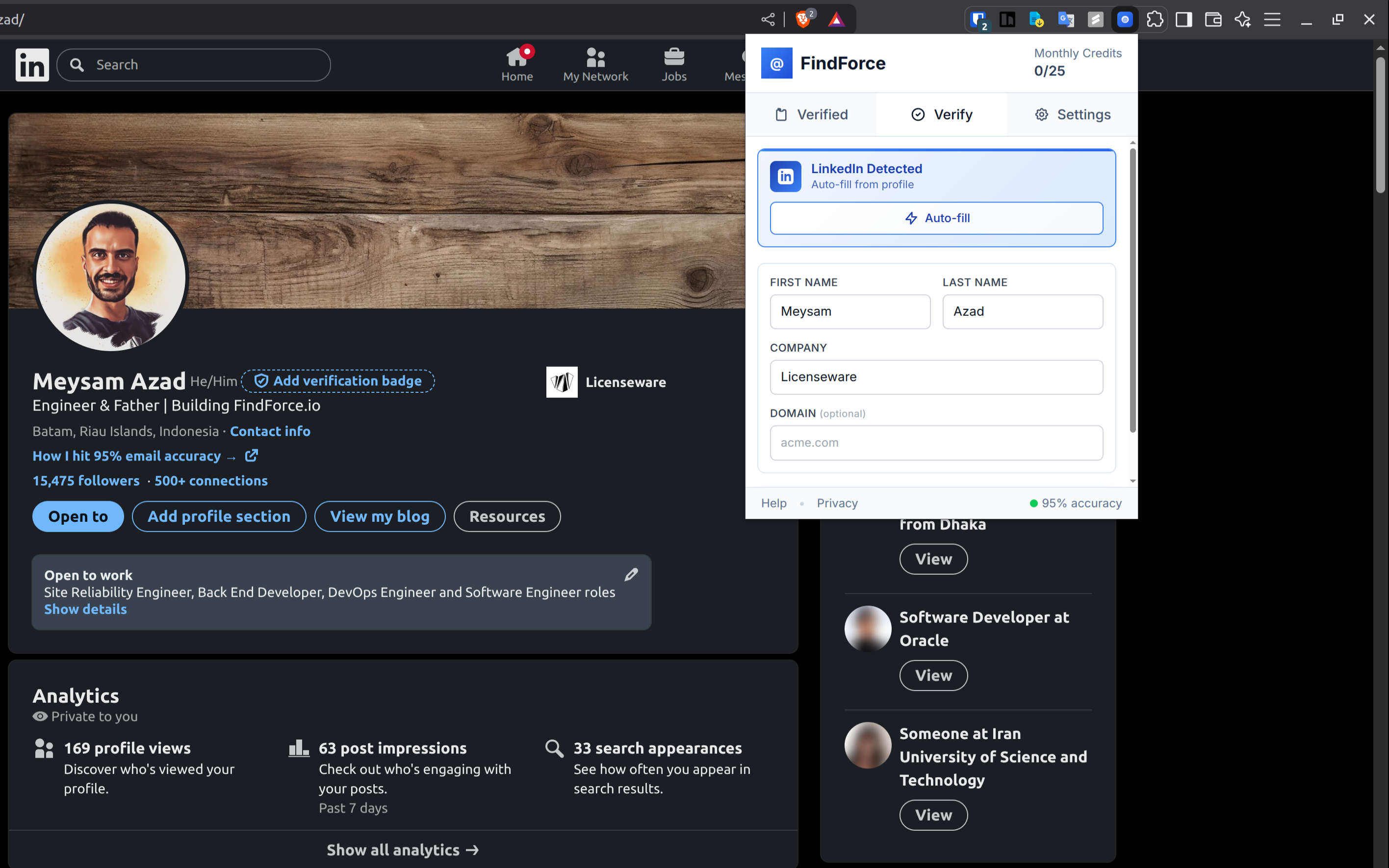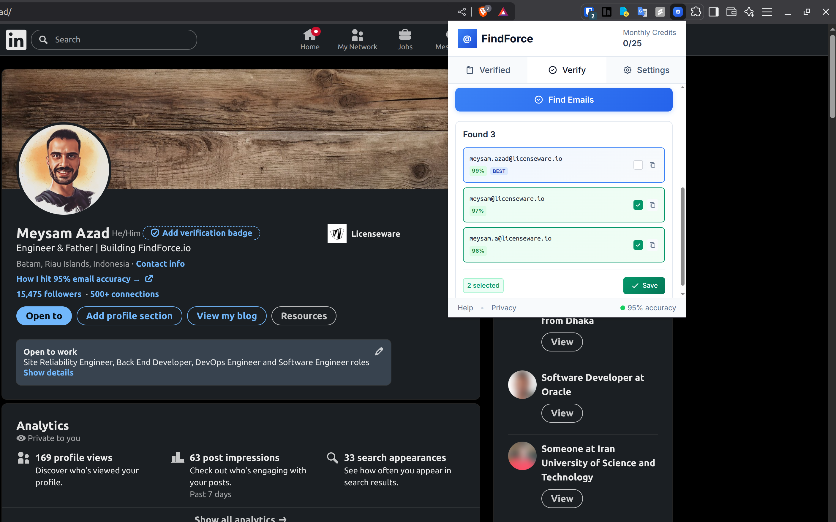 Enrich LinkedIn Contact's verified emails with 98% accuracy rate, and just one click you can sync them to CRM.