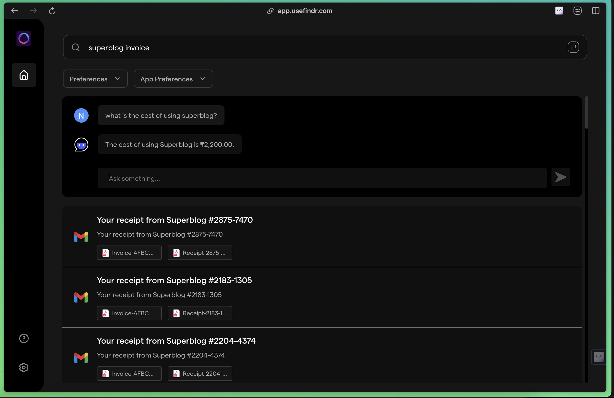 Personally the best thing what I like liked in Findr is its integration with Gmail and Google Drive. So this has helped me to search for many things which I needed most.
