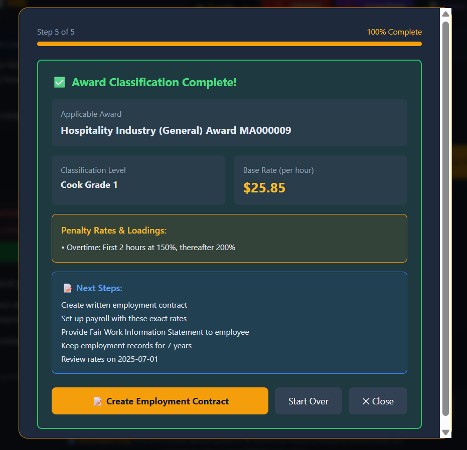 Fitz HR makes HR and compliance much easier to manage without needing to constantly call a consultant or search through Fair Work resources. The platform gives clear answers instantly and the document builder makes it simple to generate compliant HR documents that align with the Hospitality and other modern awards. It’s easy to use, quick to implement and gives peace of mind that staff issues and documentation are being handled properly. Review collected by and hosted on G2.com.