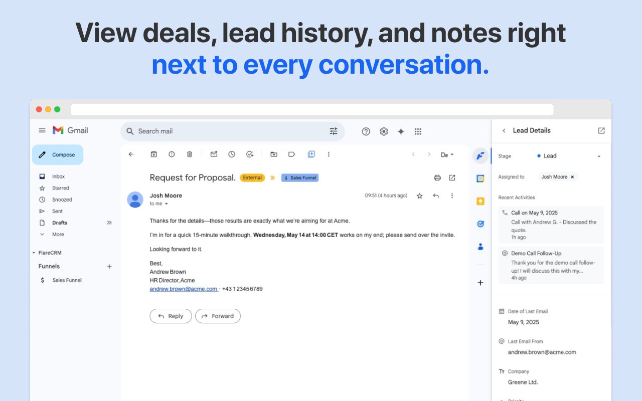 Streak lets you keep track of all your deals right from your inbox.