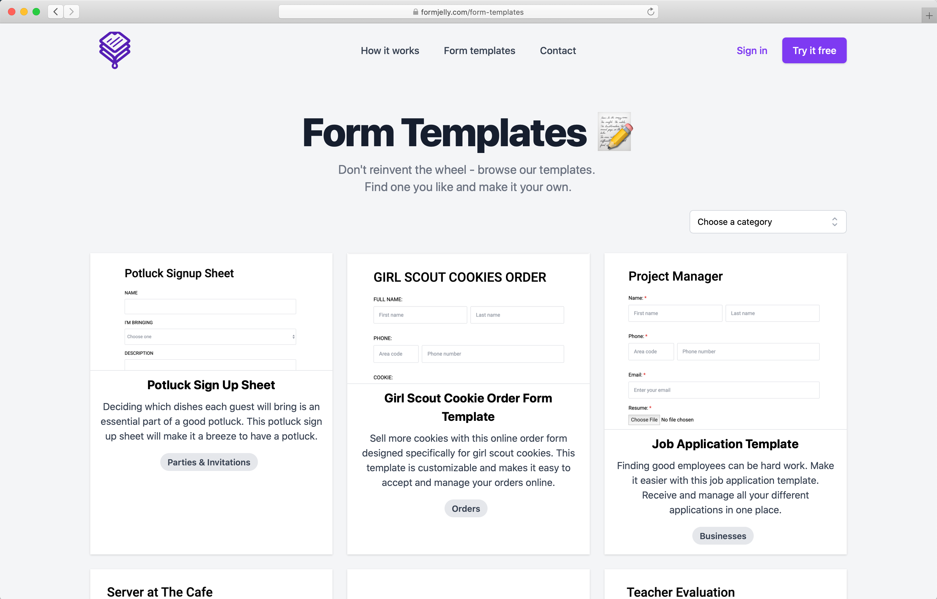 Formjelly Demo - Form templates