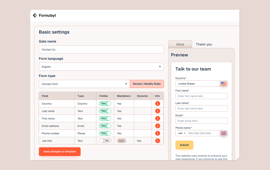 It easily allows us to manage our forms across multiple platforms, and integrates nicely into our marketing automation system. This allows us control over the data points we need in our automation database, and makes it easy for system-wide updates. Review collected by and hosted on G2.com.