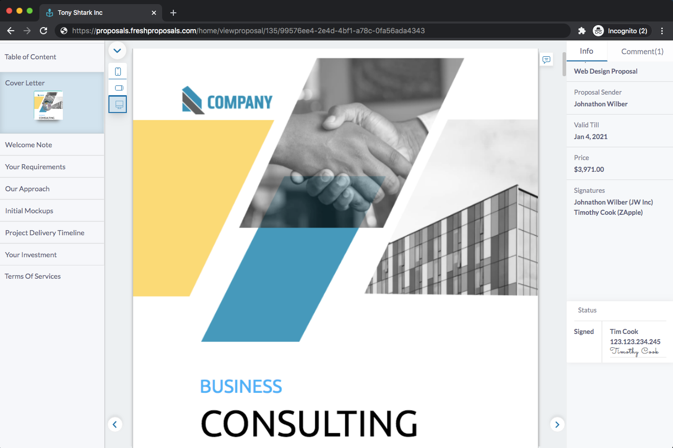 Fresh Proposals has been an integral part of my onboarding system for new clients