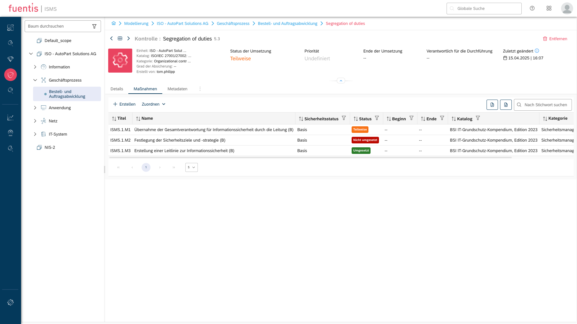 The fuentis Suite helps us run ISMS processes efficiently – from asset structuring and protection needs assessment to risk analysis and treatment. It’s a reliable choice for clients that need both ISO and BSI IT-Grundschutz alignment in a single tool.