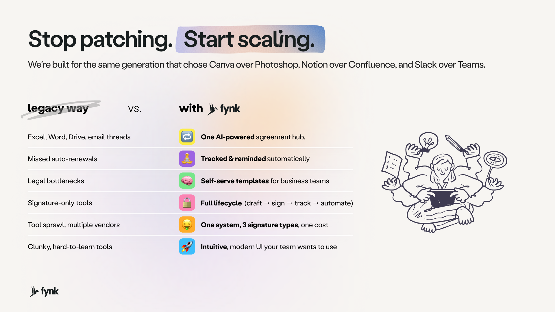 As the head of managing IT and finance systems in a global fashion house, fynk is game-changing for oversight over our vendor and real estate agreements. Prior to the fynk, our processes were fragmented — supplier agreements sat in one shared drive, retail leases in another, and we tracked important dates by relying on manual spreadsheets that led to missed renewals and compliance risks.