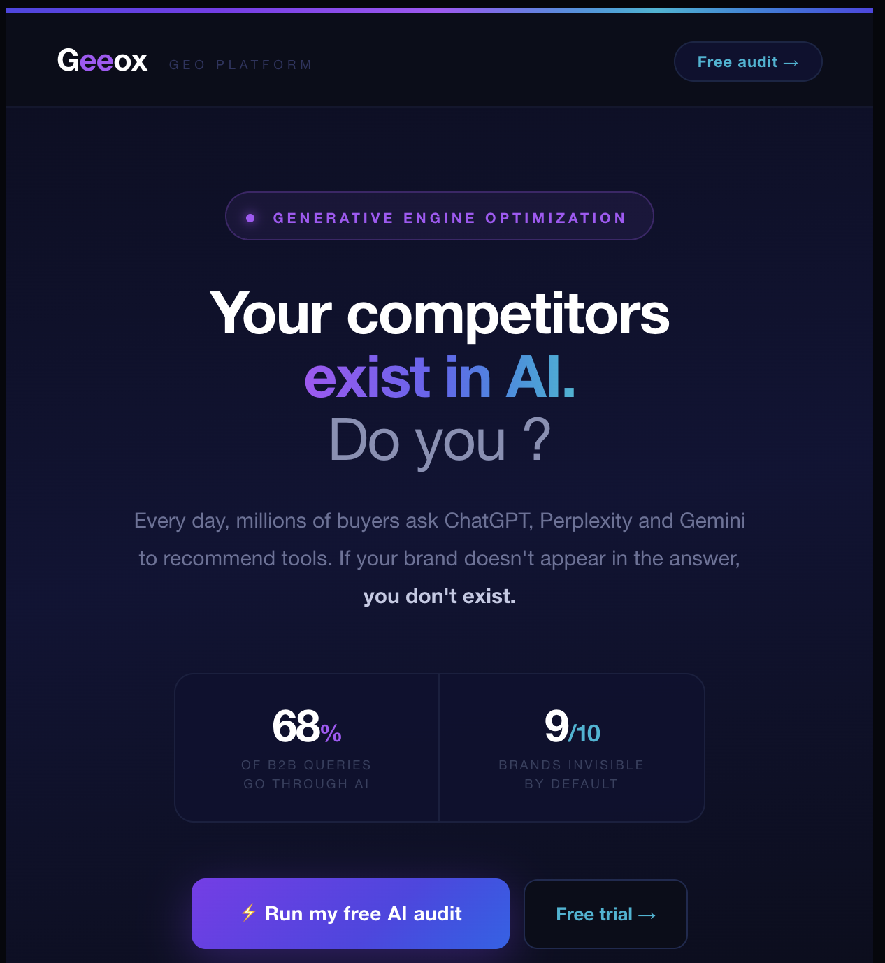 Writesonic is the complete GEO/AEO platform that tracks your brand's AI search visibility, identifies where competitors beat you, and executes the fixes—creating new content, refreshing existing pages, earning citations, and engaging on Reddit.
