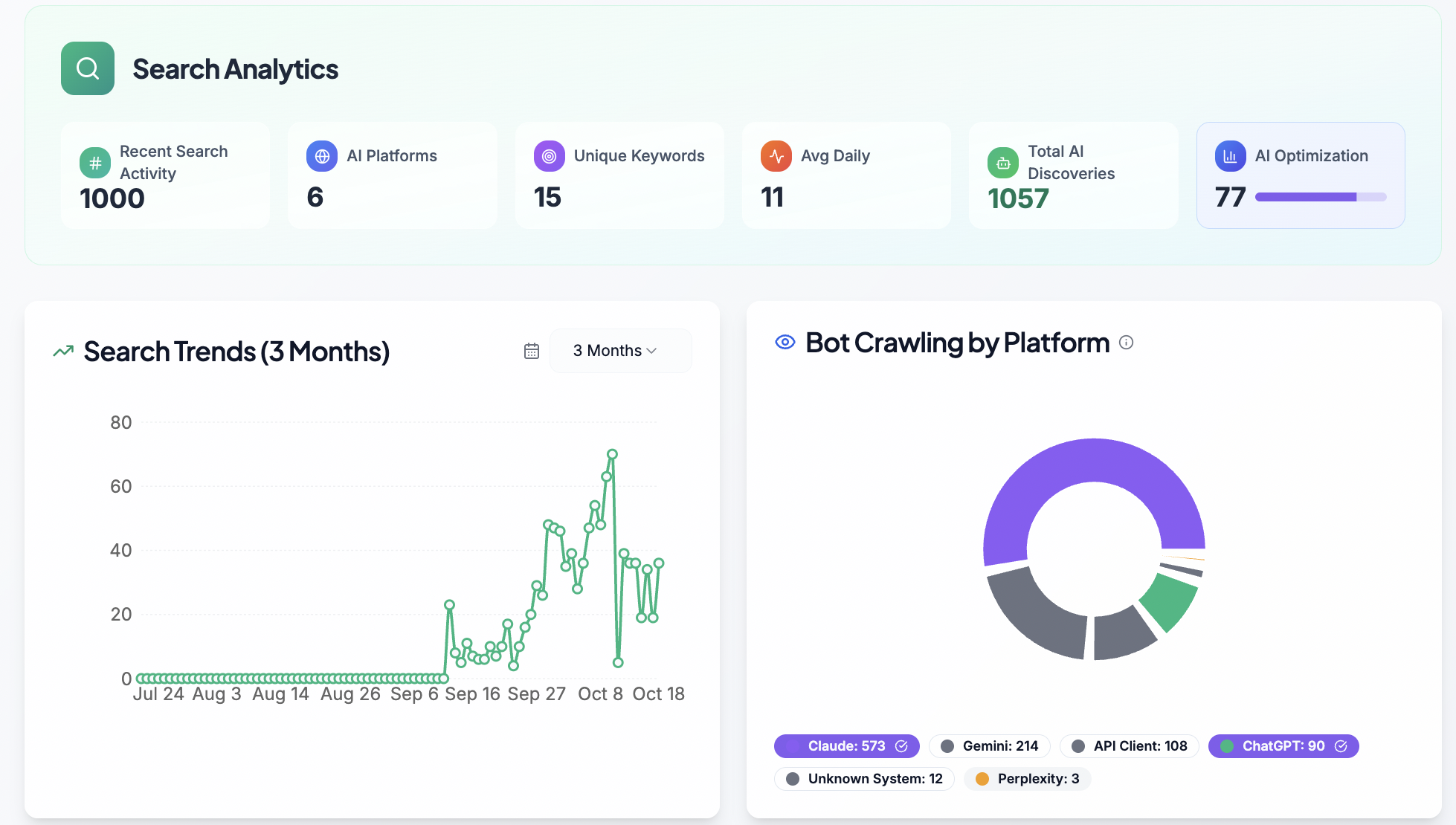 We turn any website into a machine-readable layer that modern AI systems like ChatGPT, Gemini, Claude, Perplexity, and Google’s AI Search can understand and surface. Our platform automates structured data, AI-ready metadata, and AI sitemaps, giving companies a strong foundation for AI SEO and generative engine optimization.