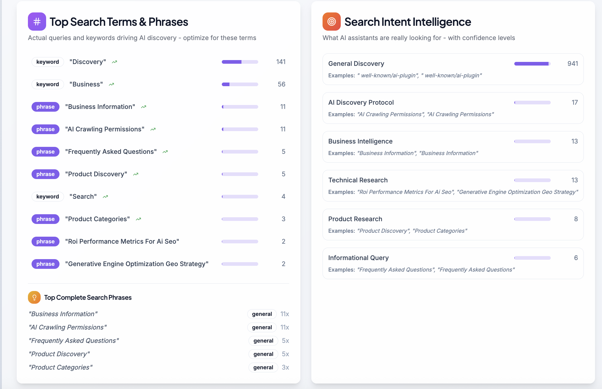 The result is a complete picture of your AI search discoverability across all major LLMs, paired with actionable insights you can implement to improve visibility in AI-generated answers and drive more conversions.