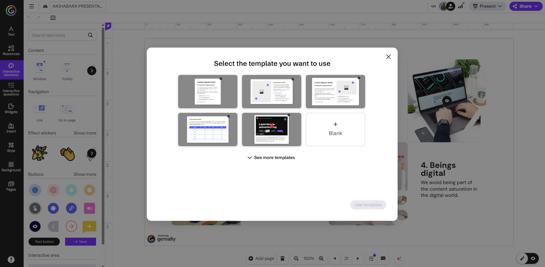 With an intuitive drag-and-drop editor and a library of over 1,500 professionally designed templates, user can create a wide range of materials including interactive presentations, gamified experiences, infographics, learning modules, digital brochures, and visual storytelling assets.