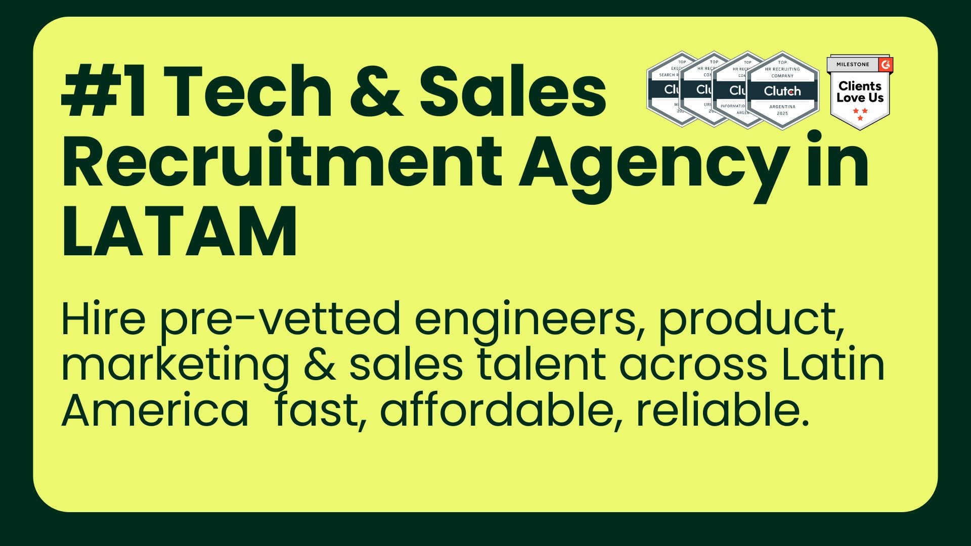 Trusted by 50+ startups and scale-ups across the U.S., Europe, and beyond, GENTY connects clients with candidates from Brazil, Mexico, Argentina, Colombia, and Chile — regions known for strong English, cultural alignment, and proven track records with international companies. By leveraging the LATAM talent market, our clients cut hiring costs by up to 40% while accelerating time-to-hire from months to weeks.