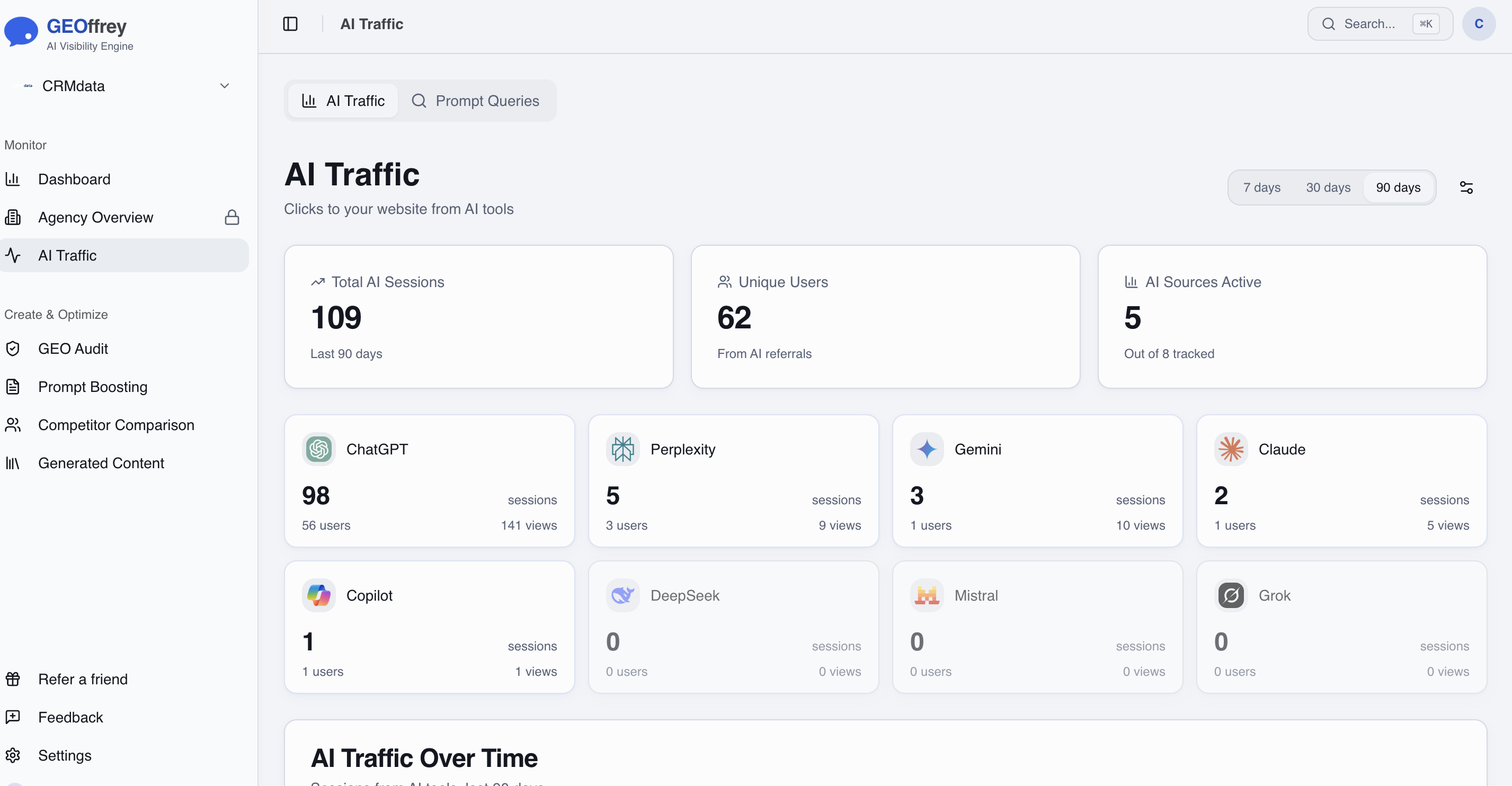 In GEOffrey you can connect to Google Analytics and track how many clicks and mentions that you get from different LLMs.