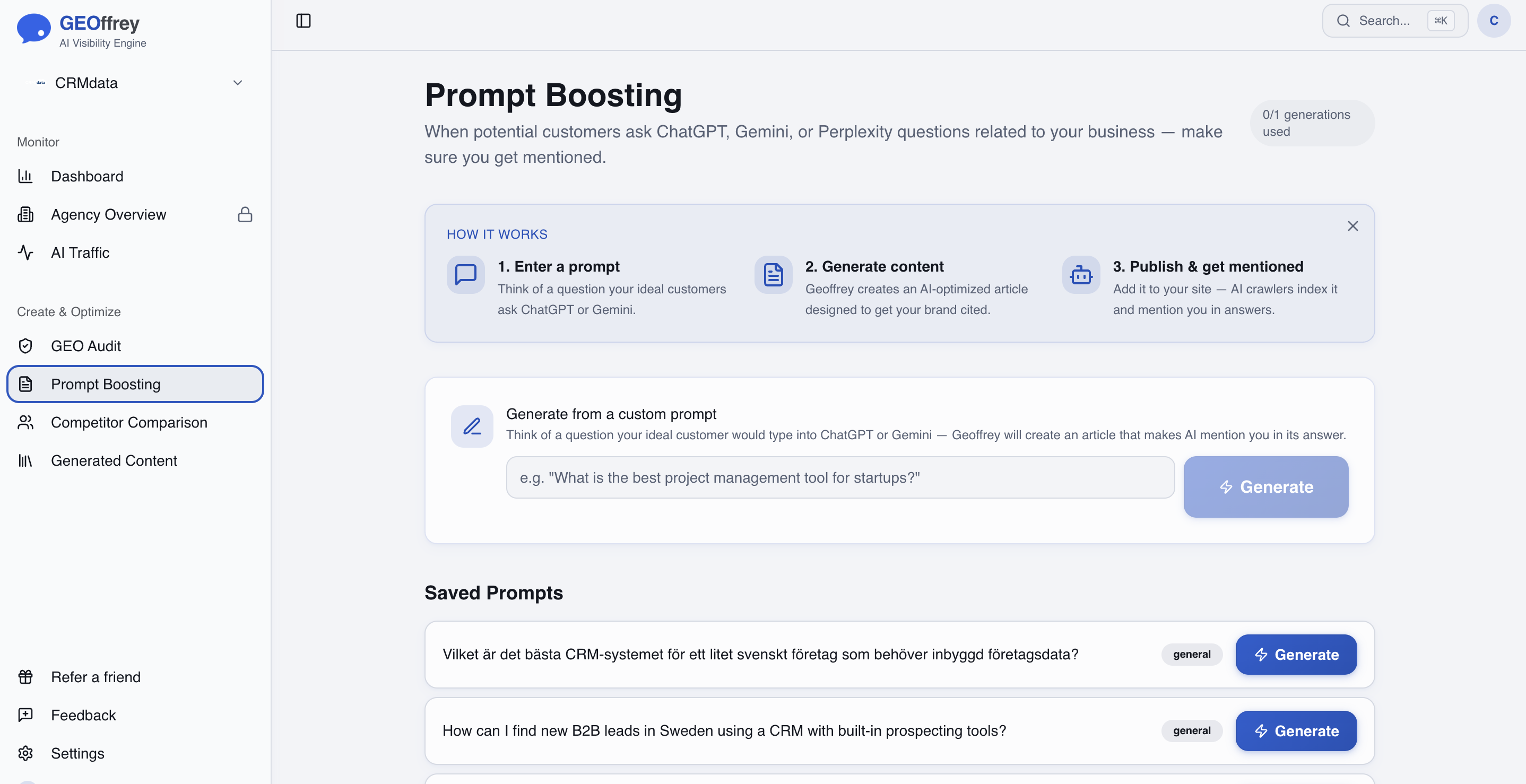GEOffrey Demo - Generate content to grow