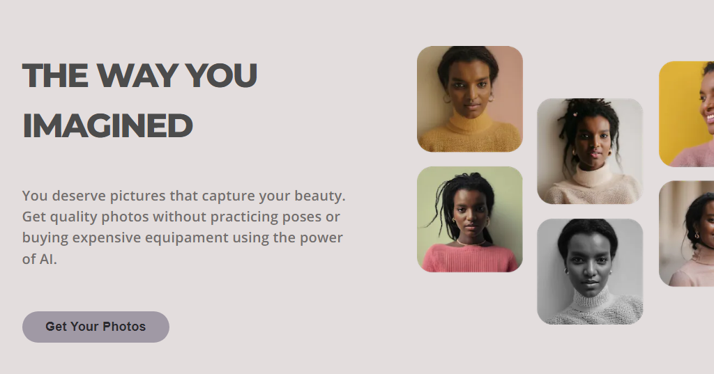 GetBetterPics hero section showcasing a variety of AI-generated portraits.