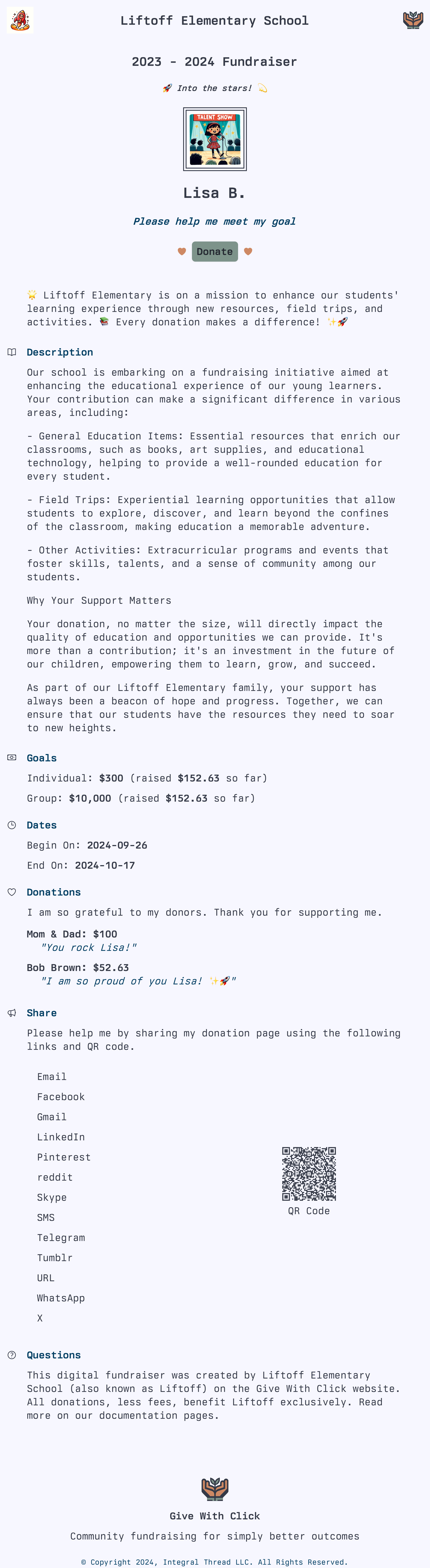 A group fundraising platform designed to support educational program leaders in their goal to positively impact the lives of the students they serve.