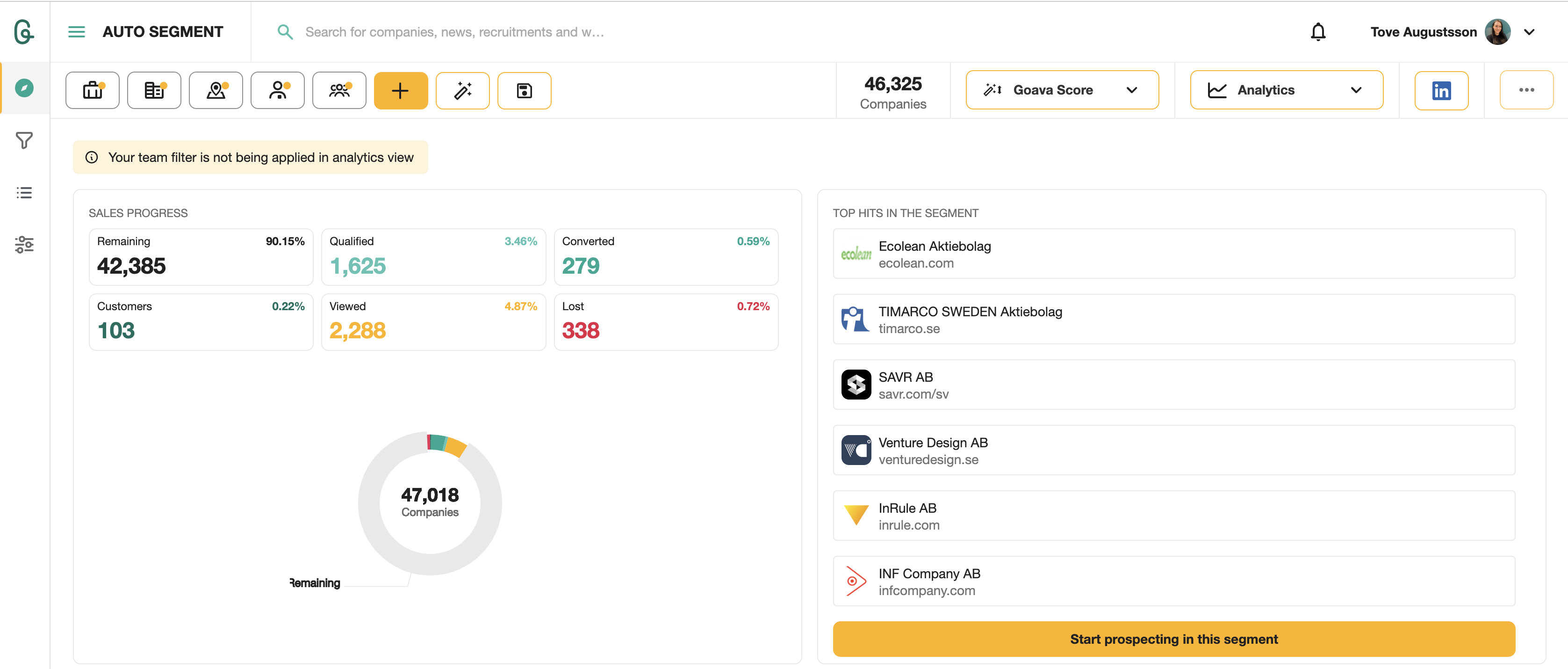 What stands out the most is how quickly it streamlined our prospecting efforts. Goava's intuitive interface and powerful data analytics have enabled us to identify high-potential leads with ease, while also providing valuable information on our current customer base. Review collected by and hosted on G2.com.