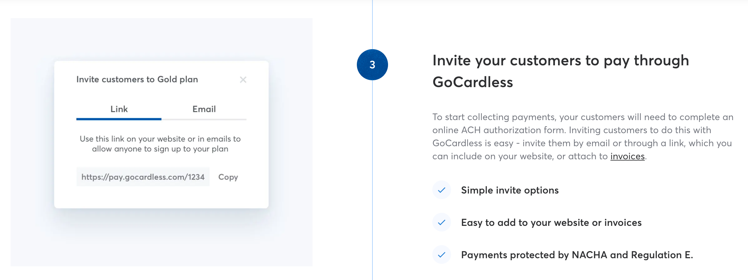 GoCardless is very simple to use for a business and for a consumer and there are multiple ways to get a client set up.