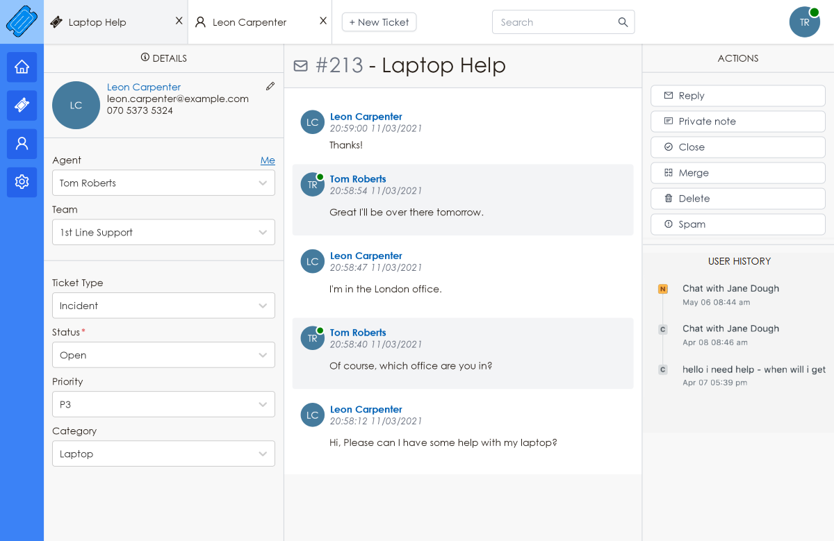 Zoho Desk pulls in all your customer interactions from across multiple channels into a single, clean interface. You can then seamlessly continue these conversations and help customers easily.