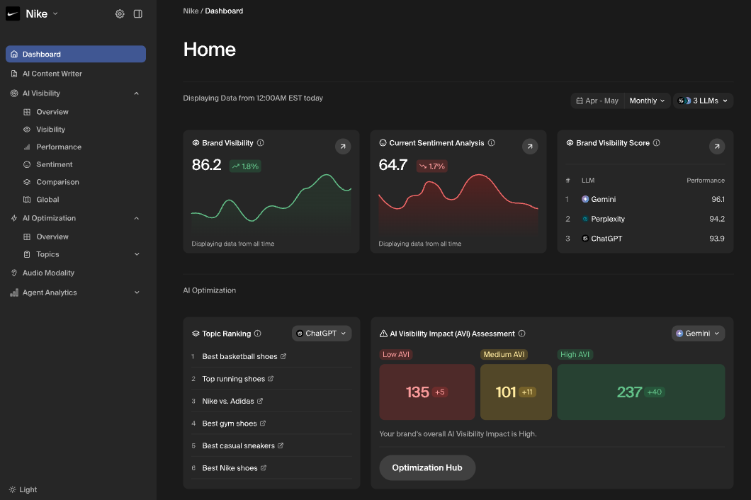 Writesonic is the complete GEO/AEO platform that tracks your brand's AI search visibility, identifies where competitors beat you, and executes the fixes—creating new content, refreshing existing pages, earning citations, and engaging on Reddit.
