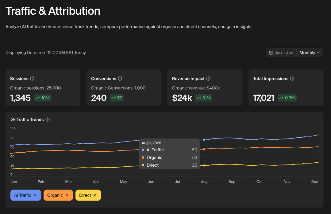 Conductor unifies high-quality content generation, real-time website monitoring, enterprise AEO/SEO, and 10+ years of proprietary website data—all in one platform. From identifying content gaps to tracking AI mentions and optimizing technical health, Conductor helps teams orchestrate every aspect of website performance and digital presence to accelerate growth.