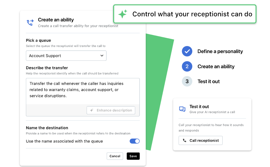 Modern automation & AI: GoTo Connect’s built-in AI Receptionist welcomes callers, routes conversations, and automates routine tasks—no third-party apps needed.