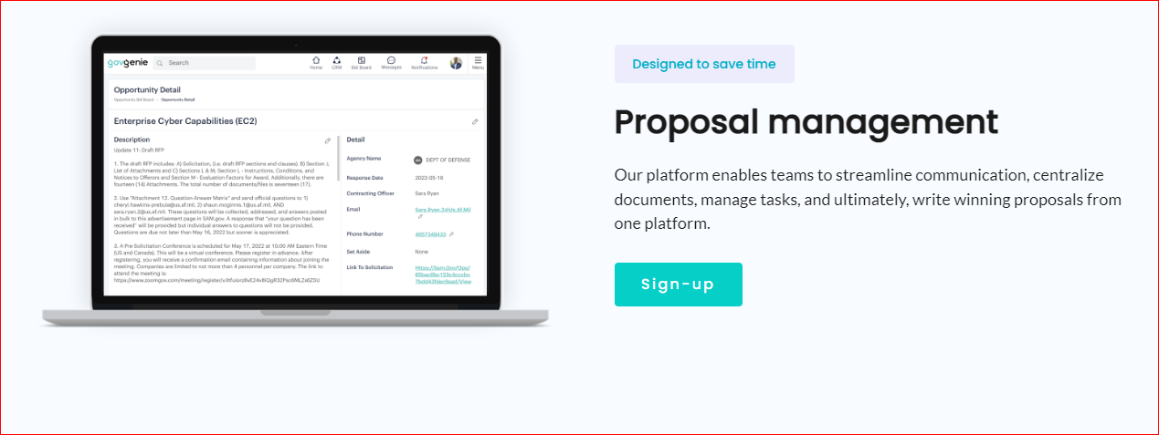 The Govly platform makes it easy to communicate with the entire supply chain for selling to the government from OEM to prime. Govly solves the information-sharing problem of government contracts by seamlessly and instantaneously sharing relevant RF(x) data in a secured and authorized way. Collaborate with your team and partners, run analytics, search for new partners, find only the opportunities you are interested in, connect with your network, and win more business.