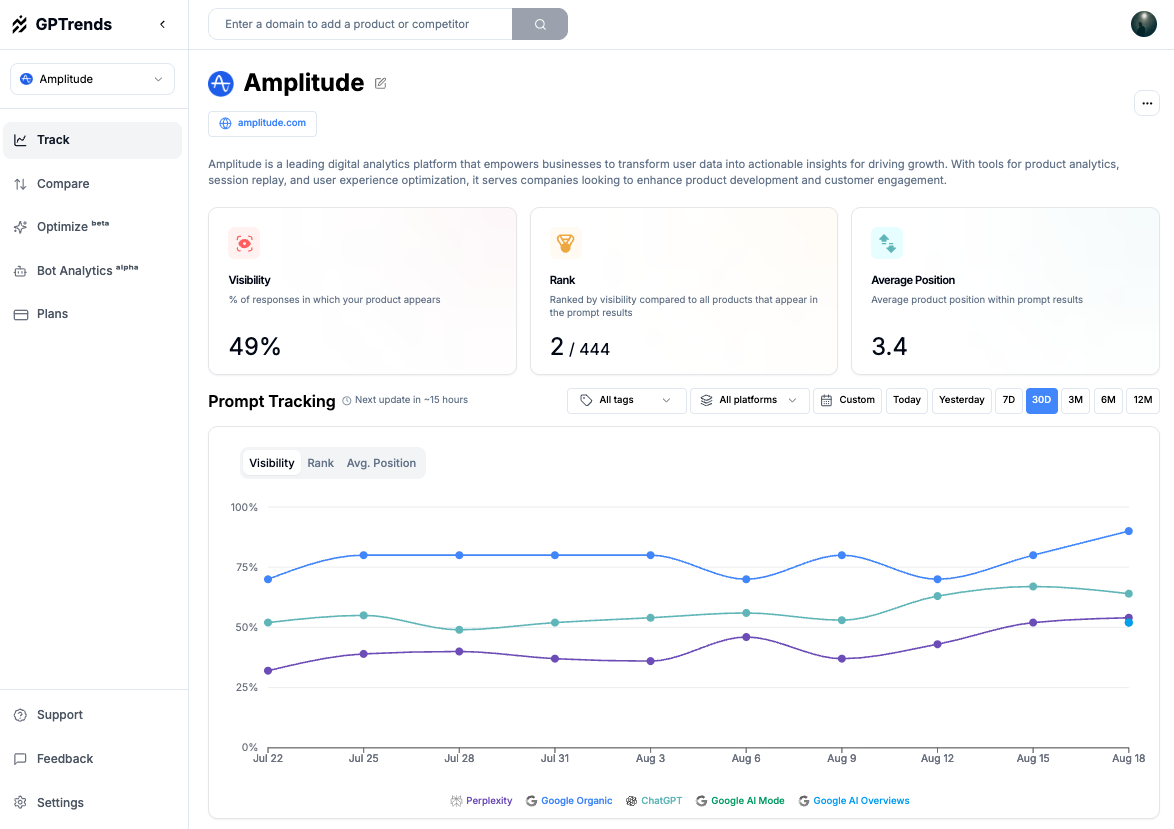 Writesonic is the complete GEO/AEO platform that tracks your brand's AI search visibility, identifies where competitors beat you, and executes the fixes—creating new content, refreshing existing pages, earning citations, and engaging on Reddit.
