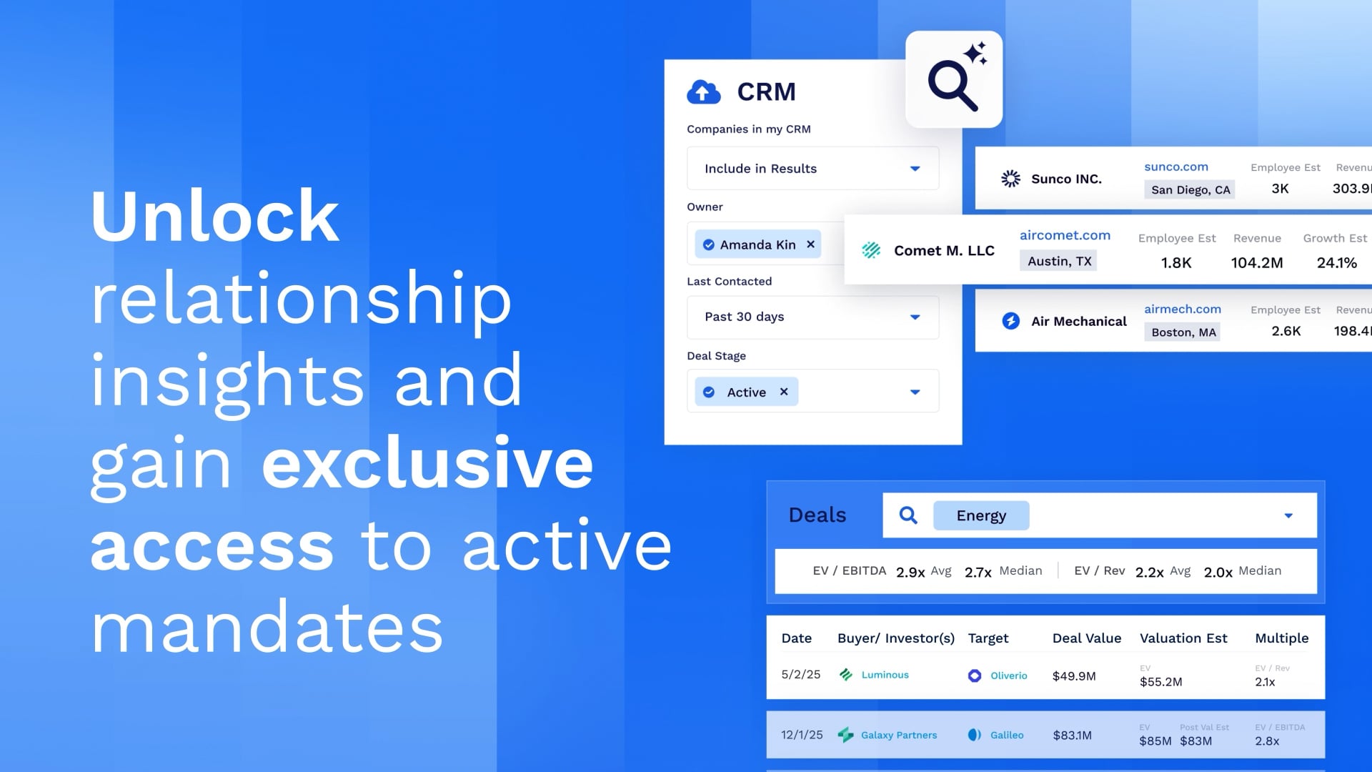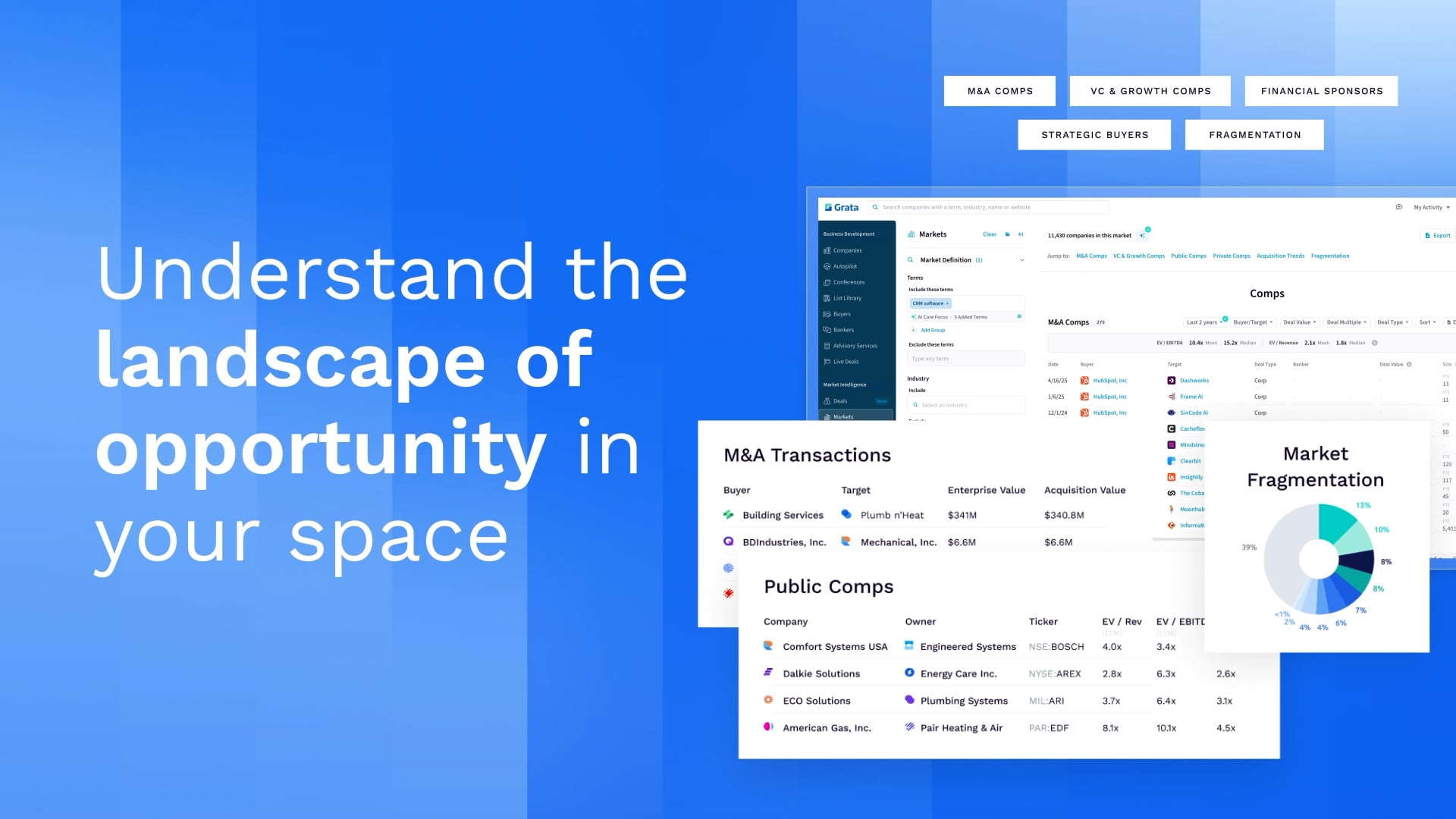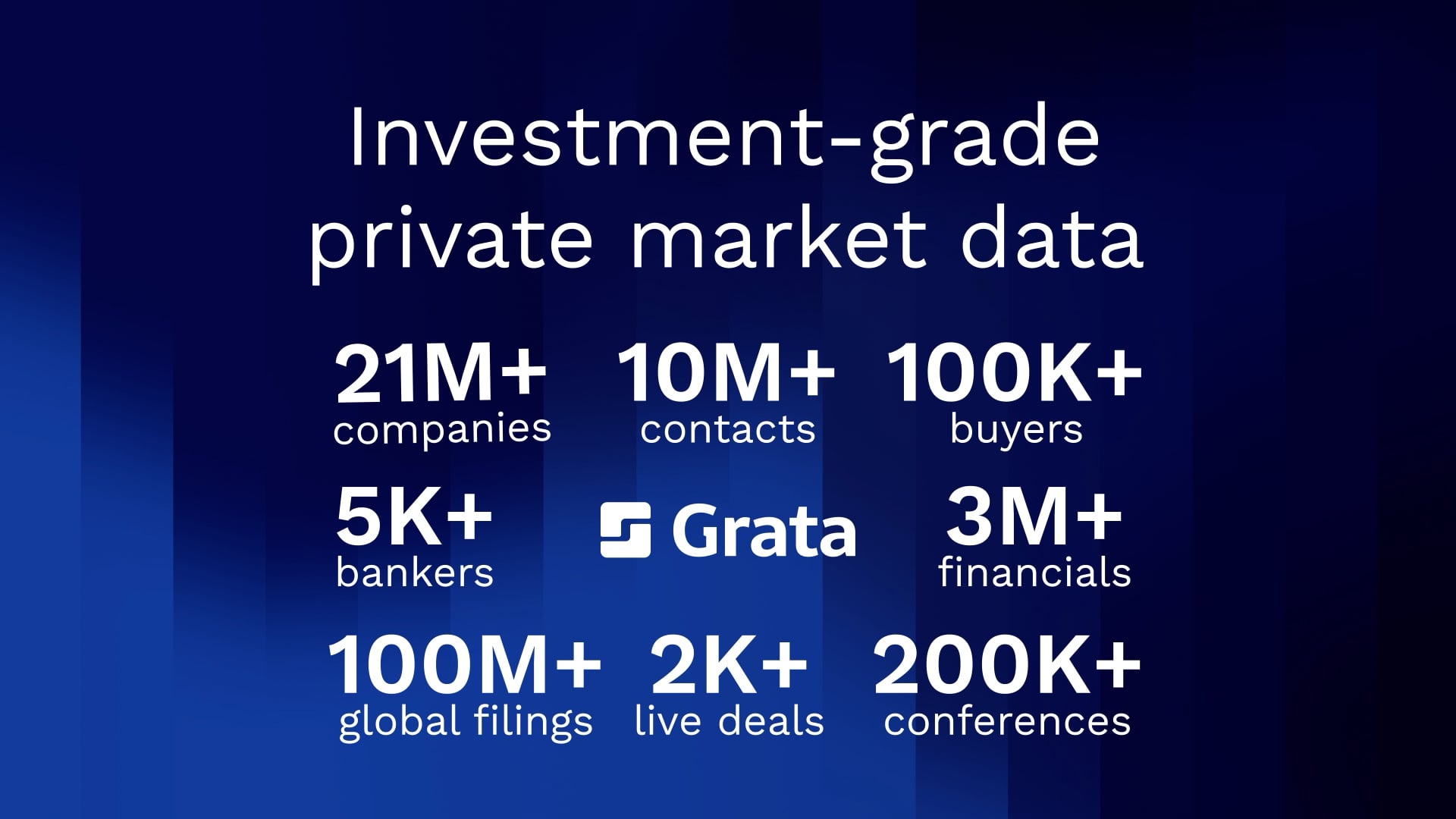 Grata is the private market intelligence platform that helps dealmakers find, understand, and connect with private companies—faster and with more confidence. Built for private equity, investment banking, corporate development, and other M&A professionals, Grata replaces fragmented research workflows with a single, modern system for deal sourcing, market mapping, conferences, and pipeline management.