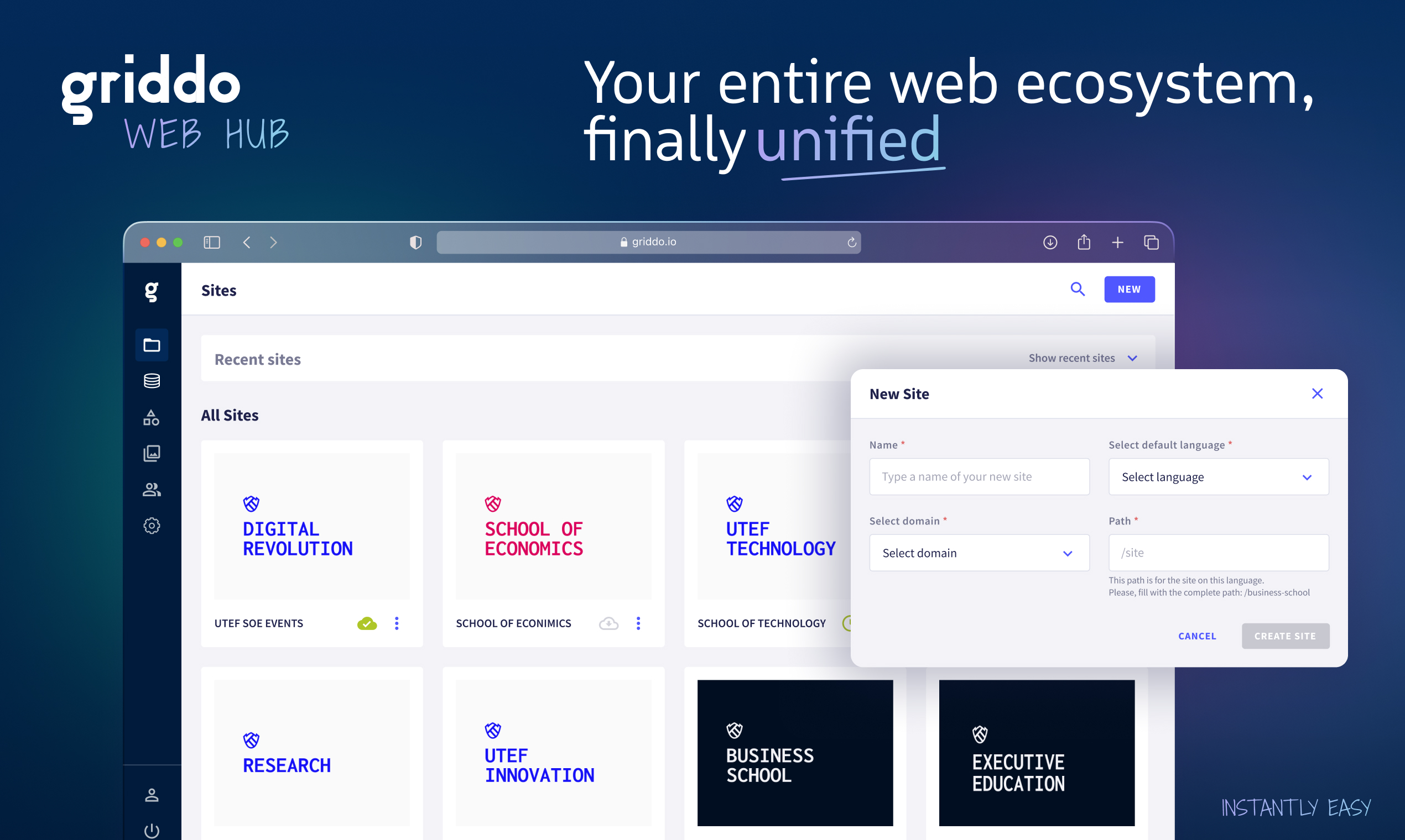 Its editor for the creation, management and publication of content is extremely simple and powerful and allows us to create websites, microsites and landing pages with complete autonomy.
