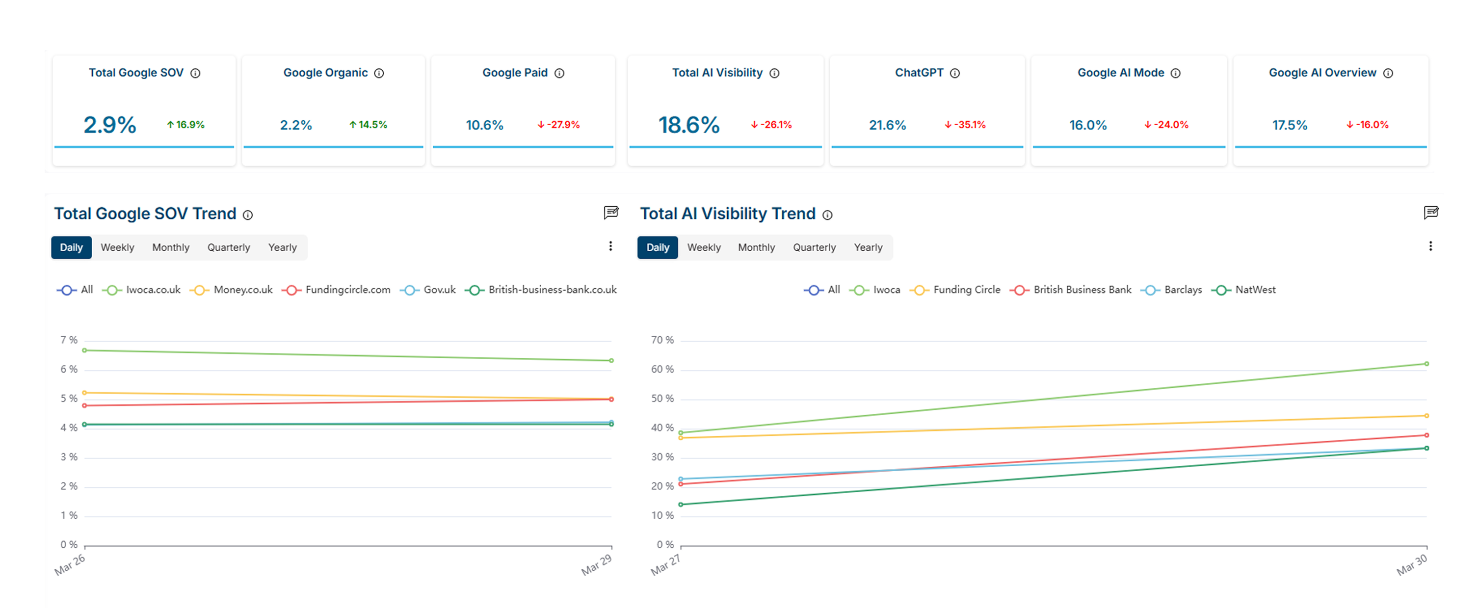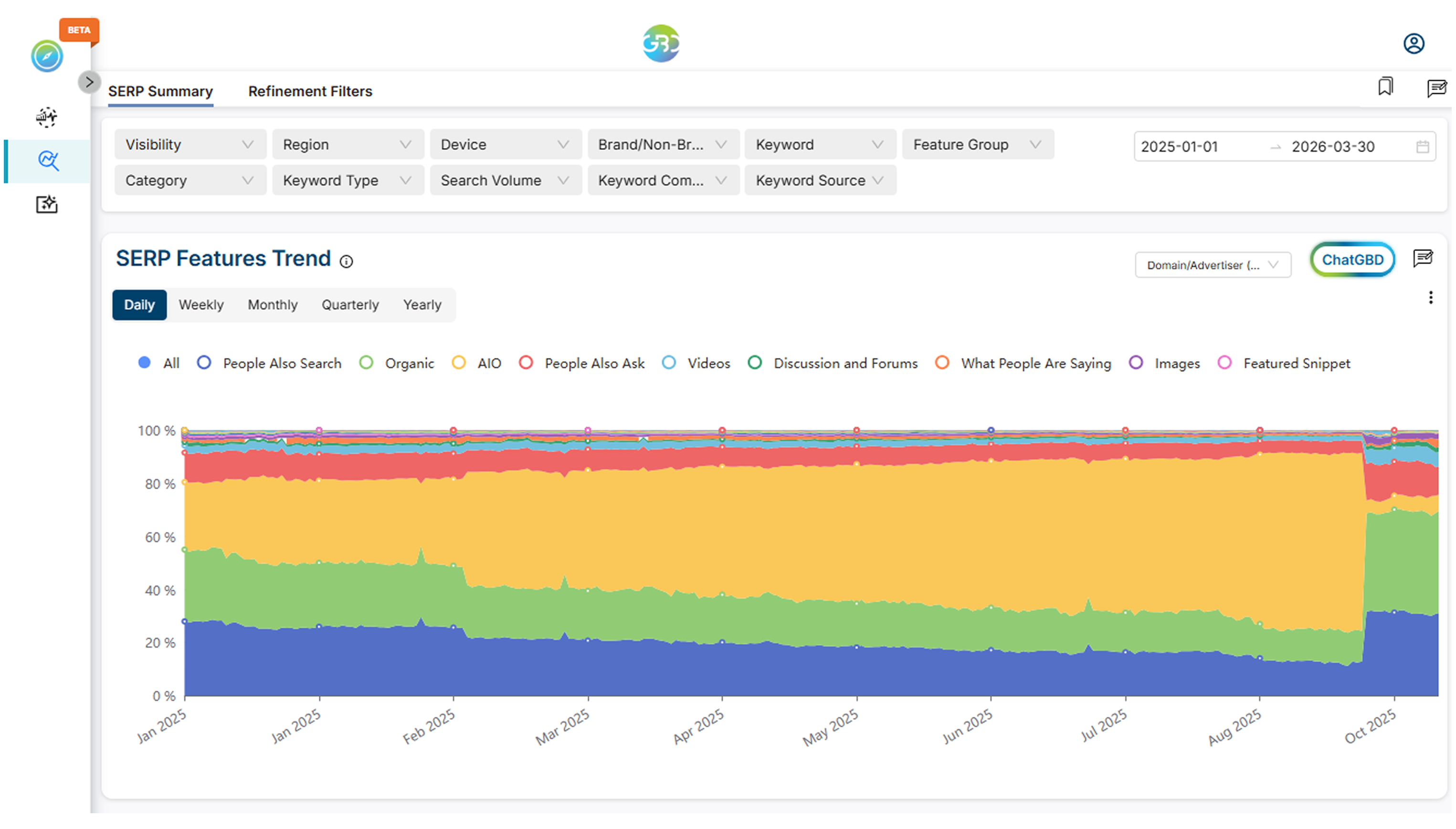 I find the ability to see what users are searching for online, what competitors are publishing and ranking for very useful. I also think that having a good picture about the company's visibility is a vital bit of information Review collected by and hosted on G2.com.