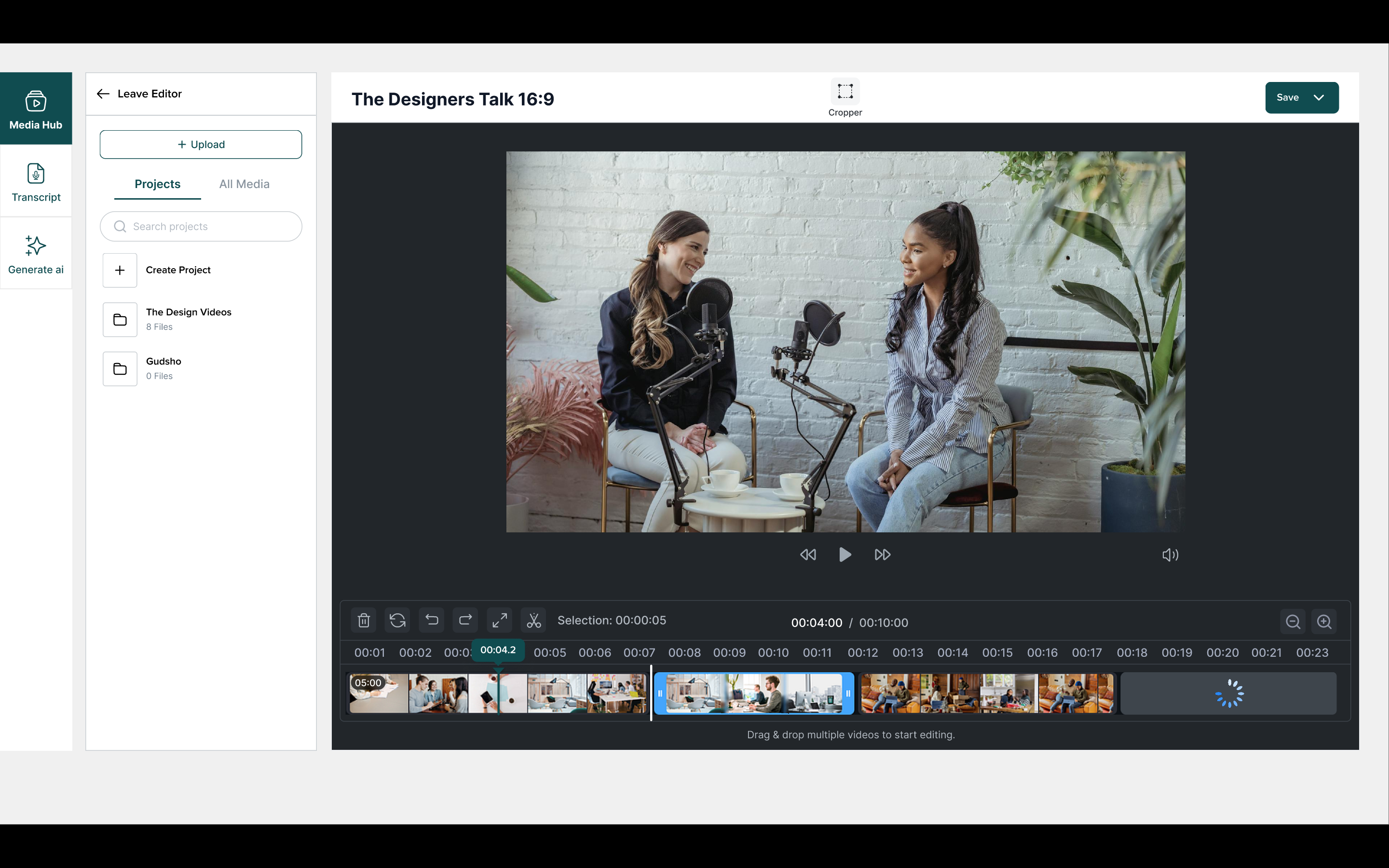 Making professional video production simple. VEED offers online video editing, recording, hosting and sharing. Key features include one-click subtitling, translation, noise reduction, cropping, cutting, transitions, custom branding, compression and format conversion.