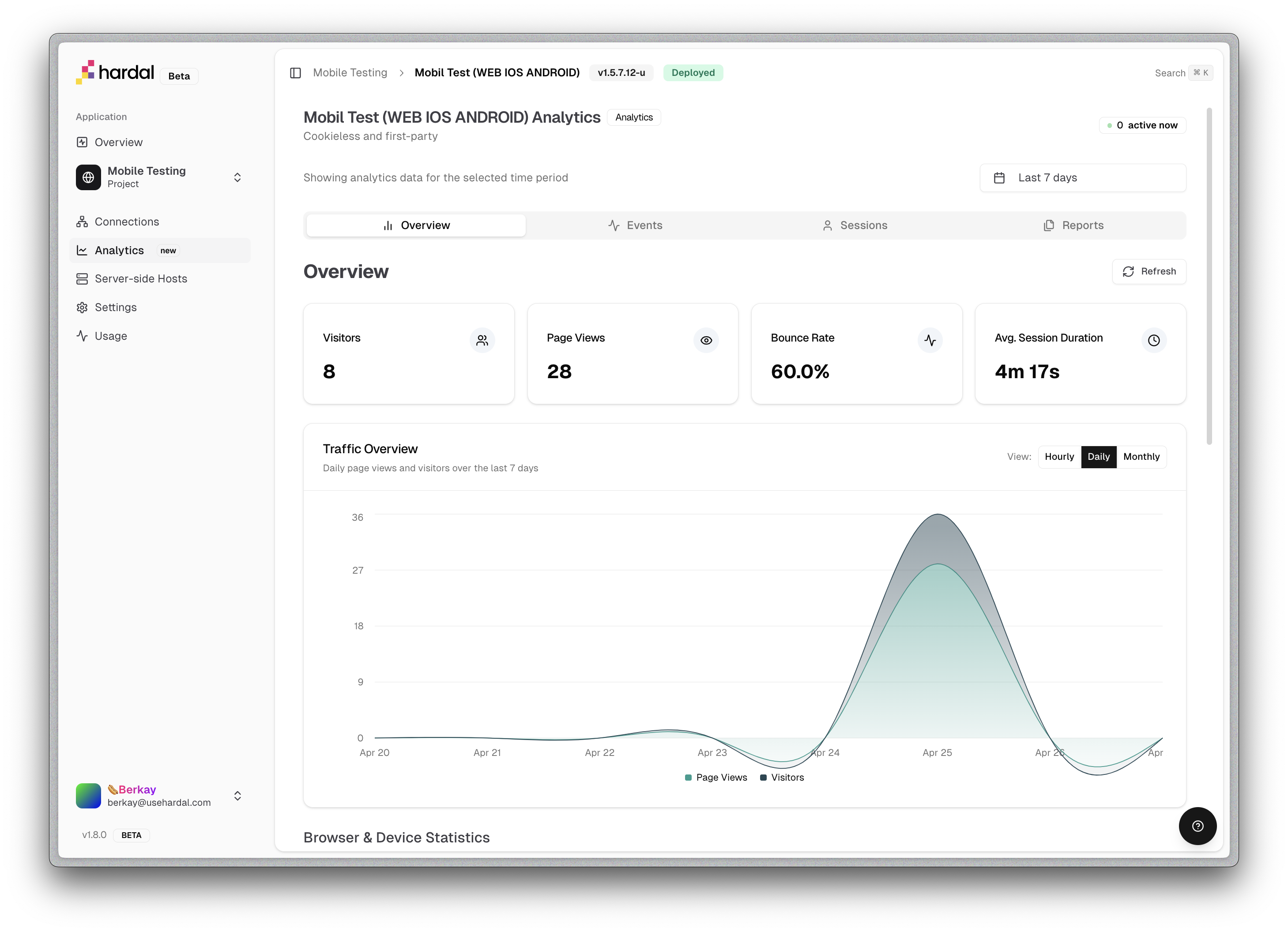 Hardal is privacy focused,cookieless and easy to used web & UX analytical tool optimized for web 2 &3.