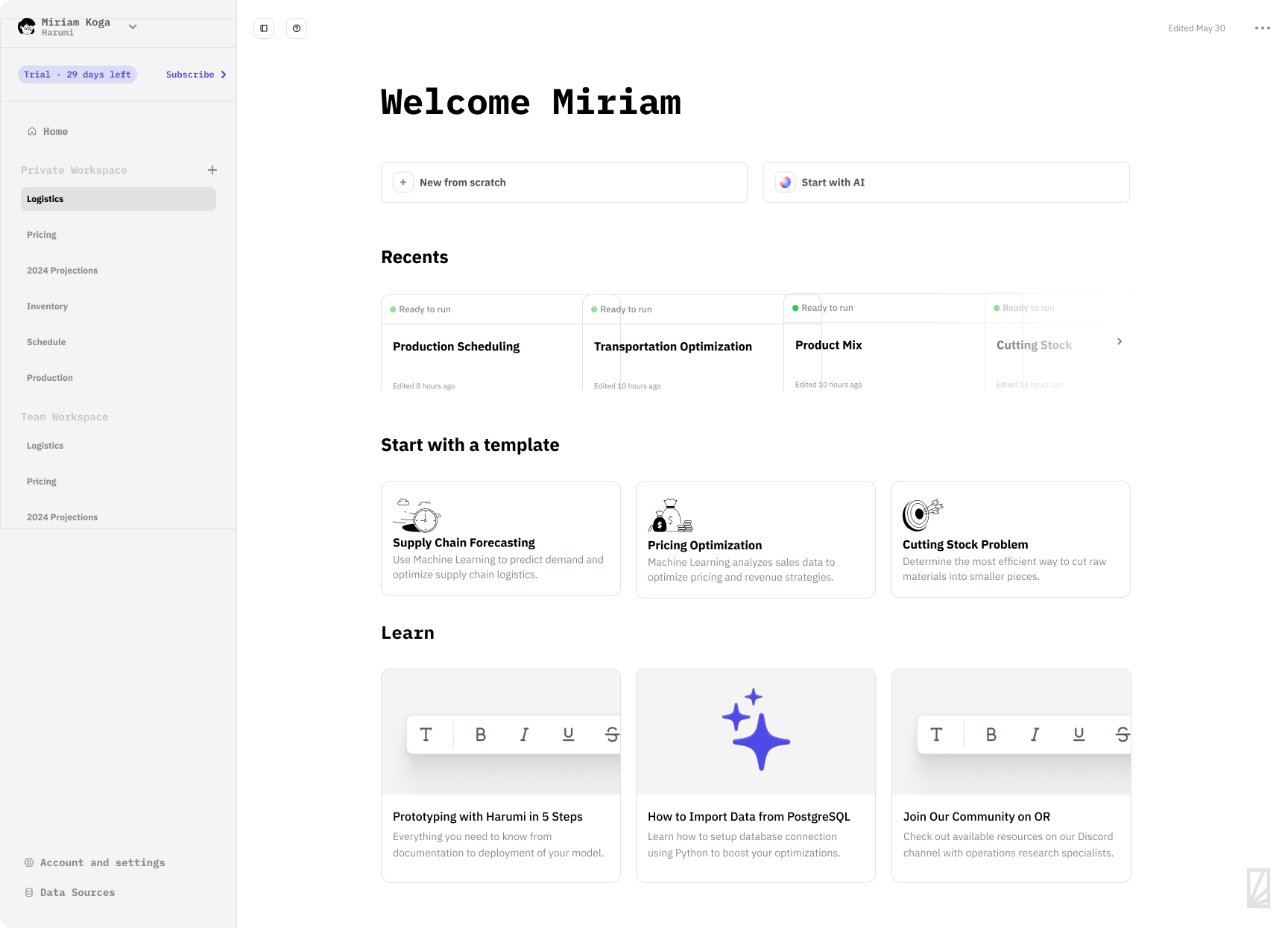 Harumi offers tools to document business rules collaboratively with other teams in the company. They also facilitate model deployment as they take care of the infrastructure behind it.