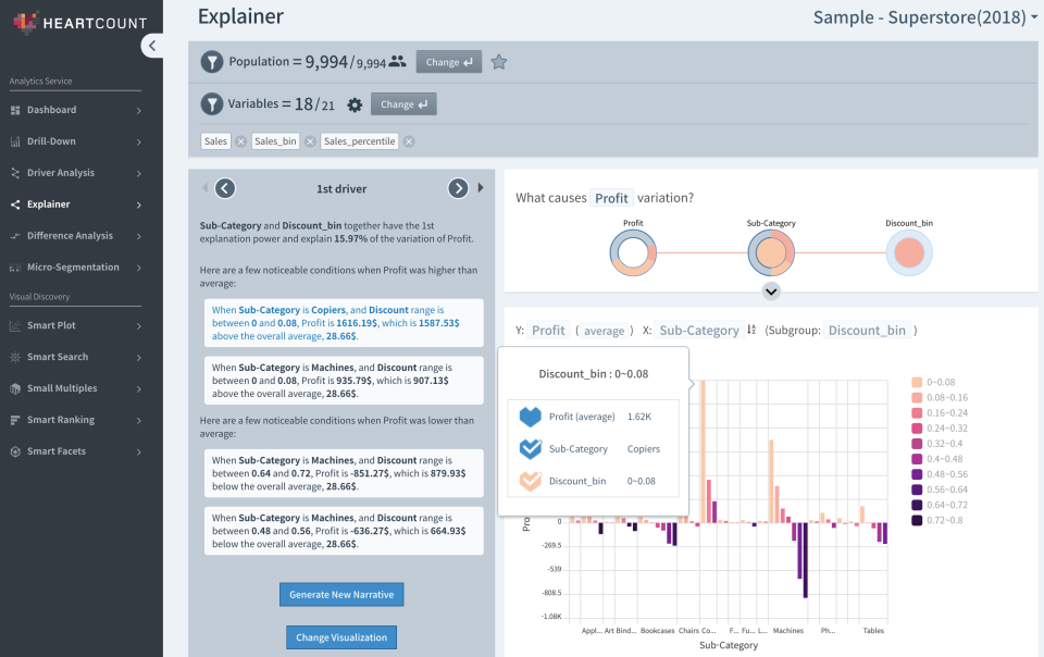 2. Individual data visualization and automatic binning of data derivatives