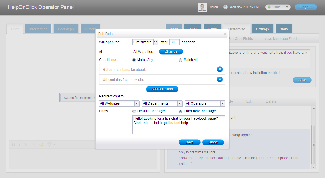 HelpOnClick is easy to install and it is long enough to use. It is very useful when dealing with the six basic customer interactions, what I am most excited about it is that the chatting automatically collect the data of the visitor, such as location and browser. On the other hand, I am able to form opportunities for my customers which are personalized as well as meaningful. Review collected by and hosted on G2.com.