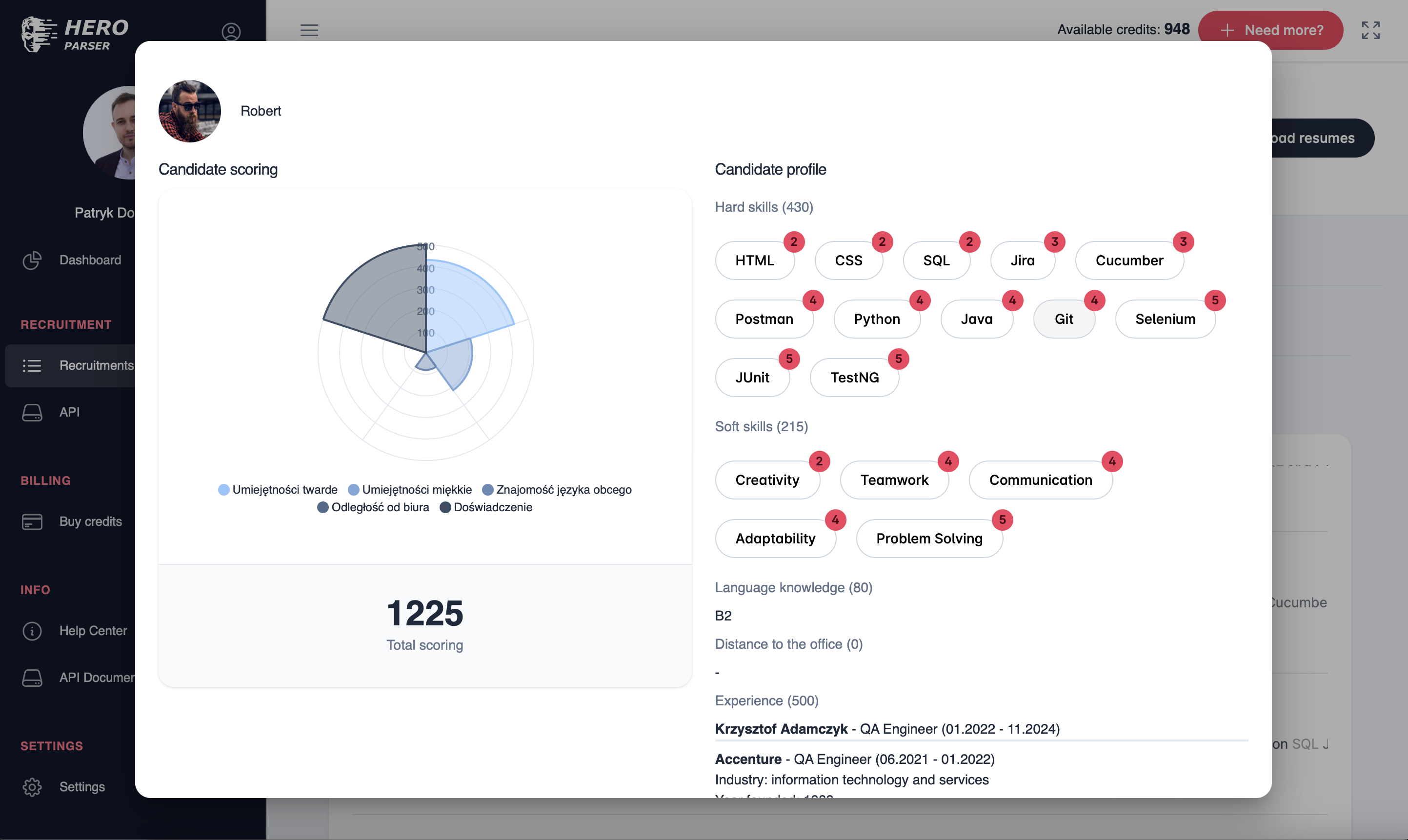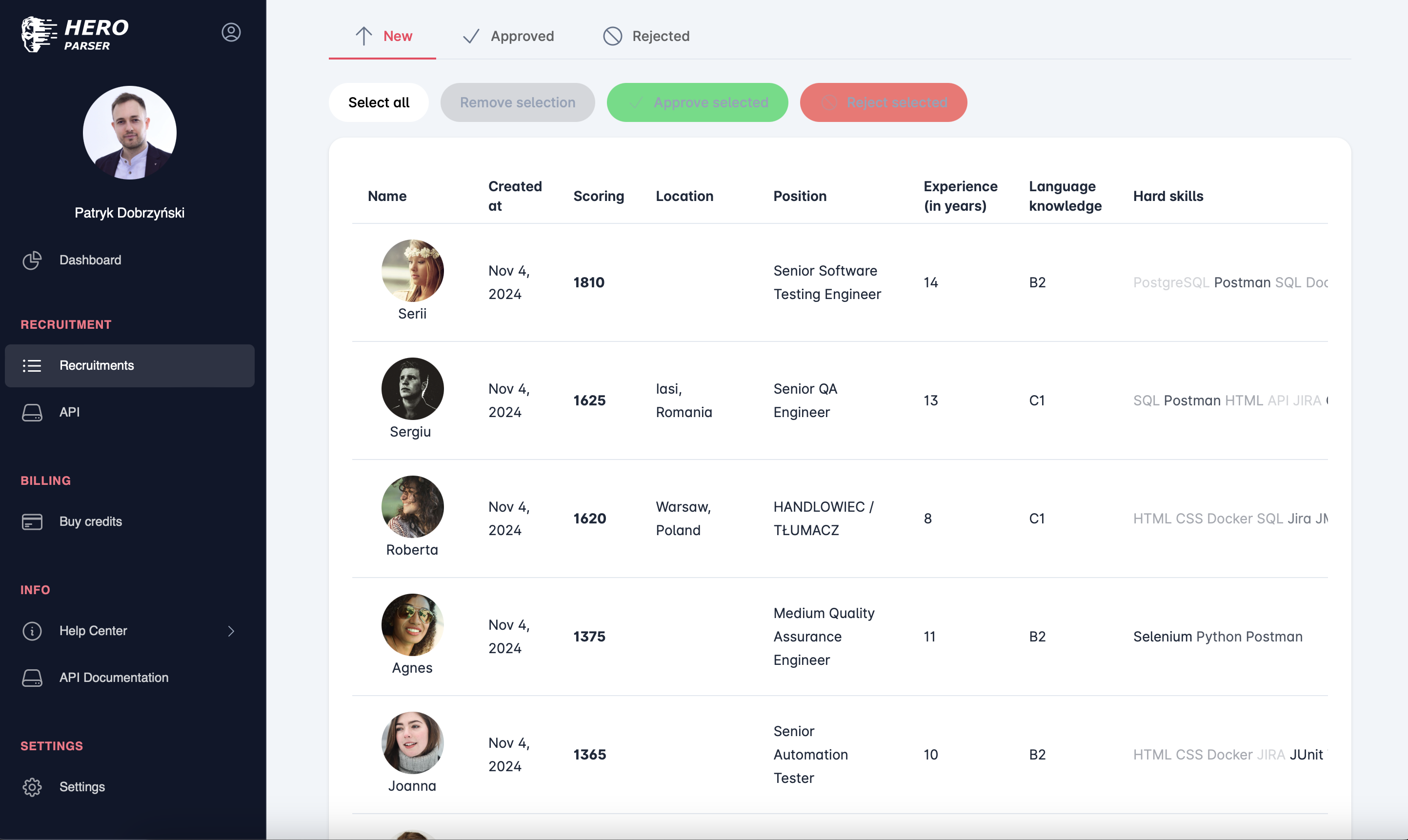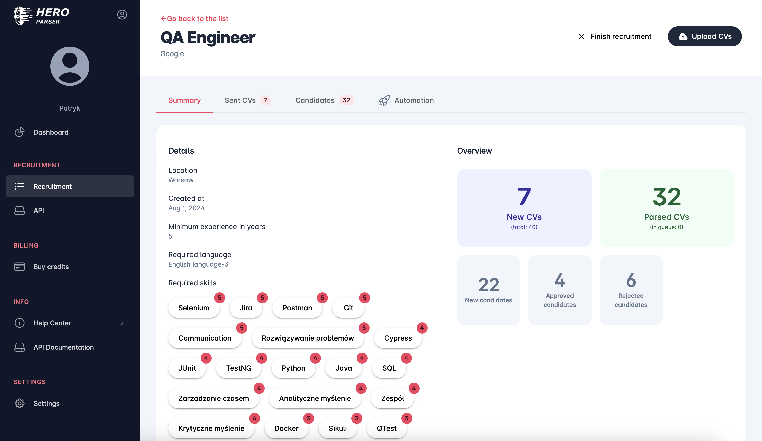Hero Parser is a SaaS fortress-like secure (GDPR compliant) CV parsing and candidate scoring platform trusted by thousands of companies from 6 continents. The platform was founded in 2024 with a simple mission to address the most common problem in recruitment: the long response time to submitted CVs (a problem highlighted by candidates who have waited up to 2 weeks for a response).