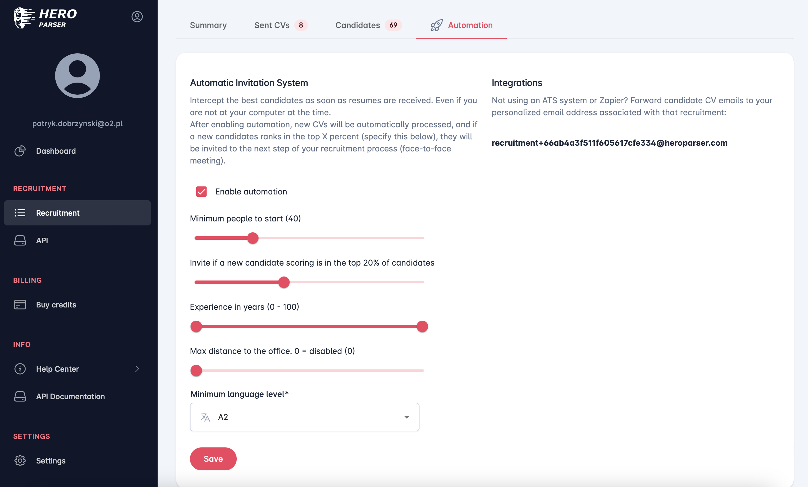 Say goodbye to manual CV reviews. Hero Parser automates the entire process, from scanning and scoring candidates to sending out interview invitations. Our advanced algorithms ensure that you only spend time on the best candidates, dramatically reducing your time-to-hire.