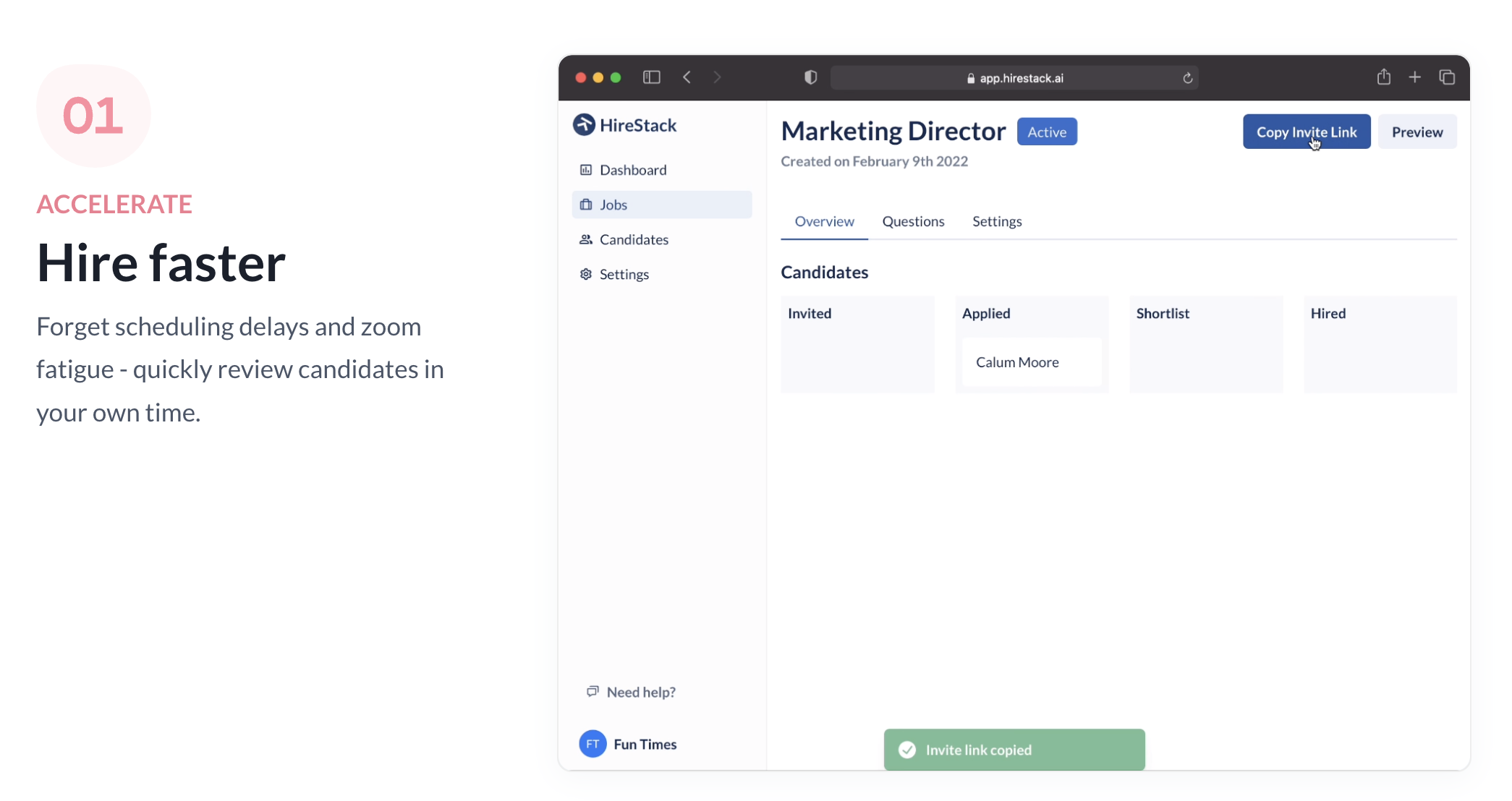 Forget scheduling delays and zoom fatigue - quickly review candidates in your own time.