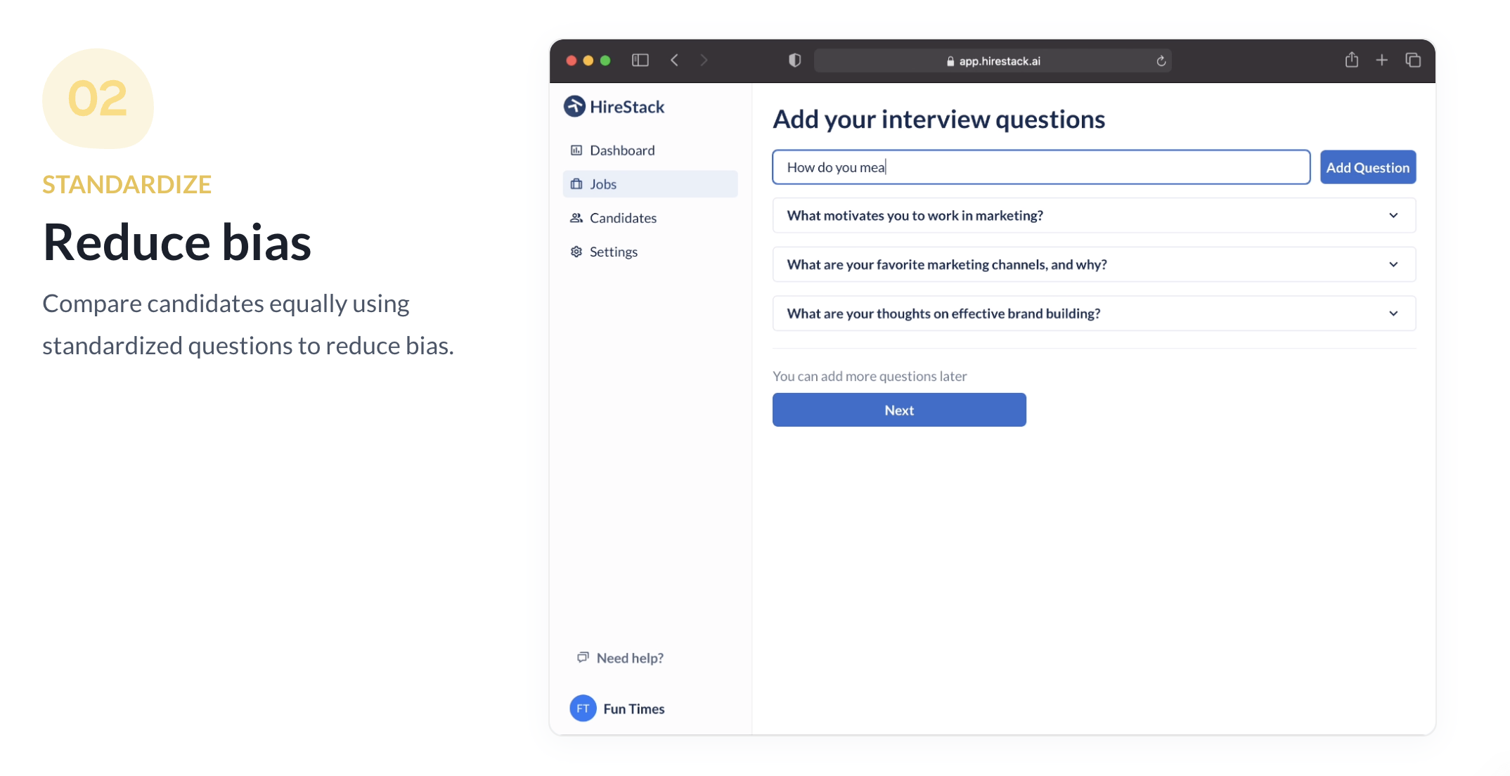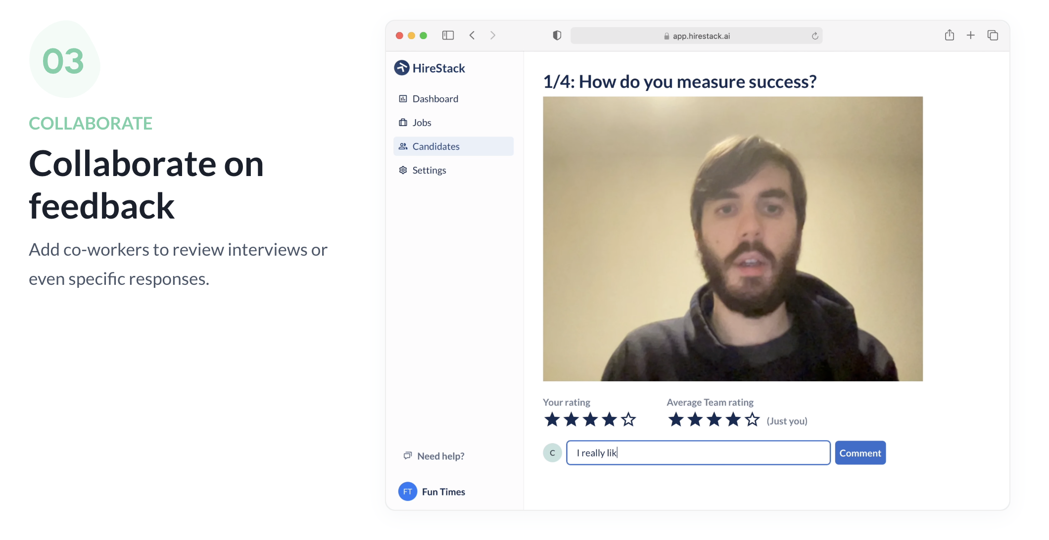 Hirestack is easy to use and very effective. It has a free plan to get started and using the software one can make quick decisions when hiring new employees. Very easy to implement and get started and the customer support is excellent. Review collected by and hosted on G2.com.