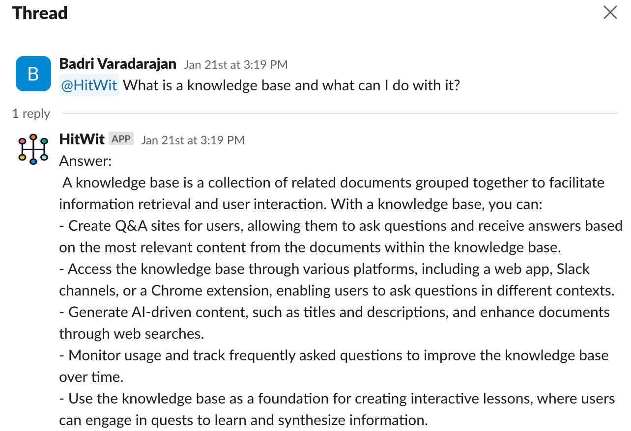 A versatile Gen AI tool which I use to sell, market and support my services. Hitwit makes it extremely easy to convert your PDFs, Weblinks, videos into a Live meeting helper, a Website chatbot or an interactive lesson. Highly accurate, easy to use and deploy. Review collected by and hosted on G2.com.